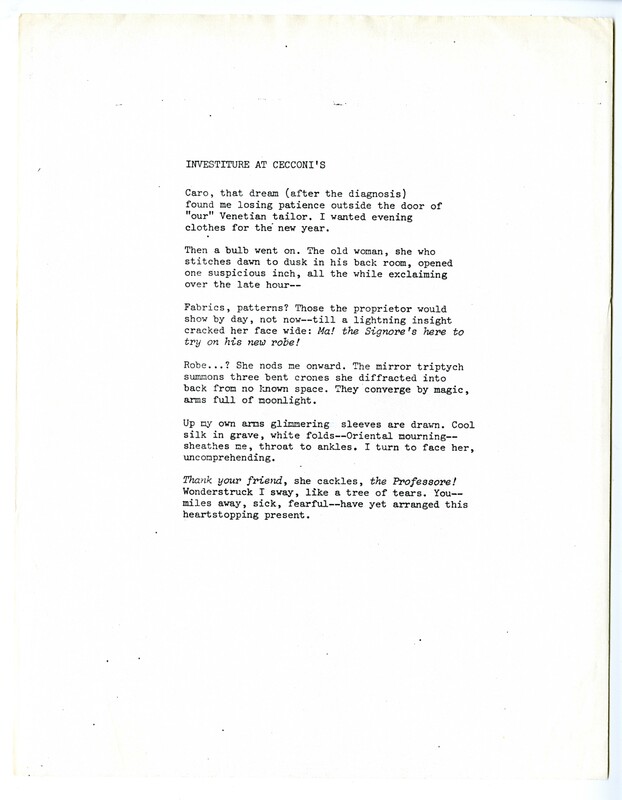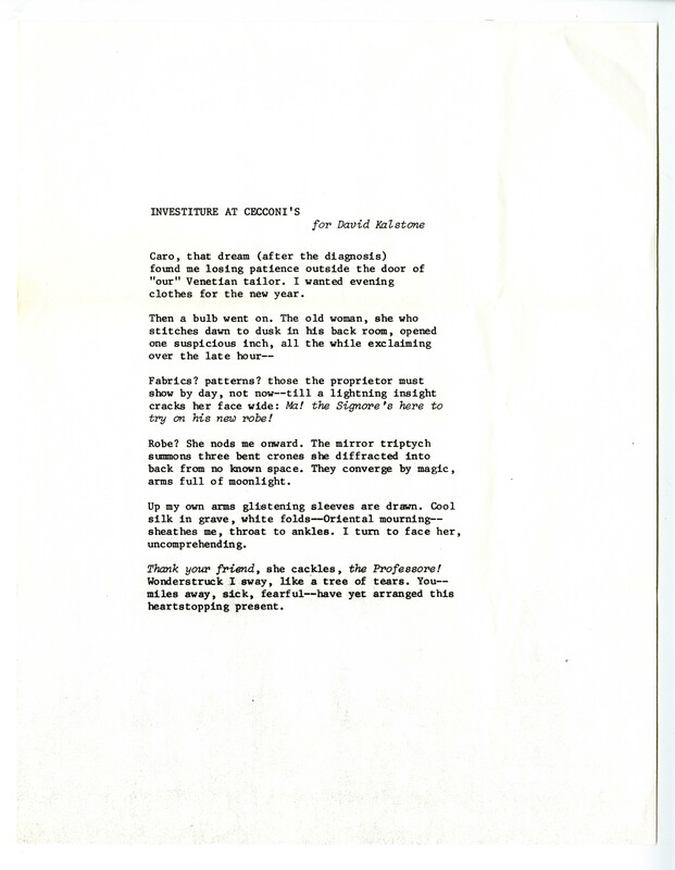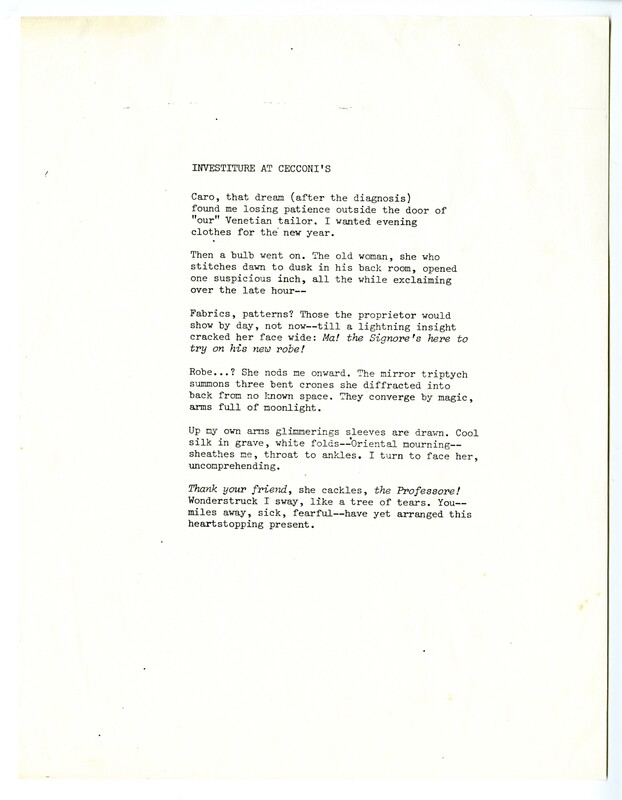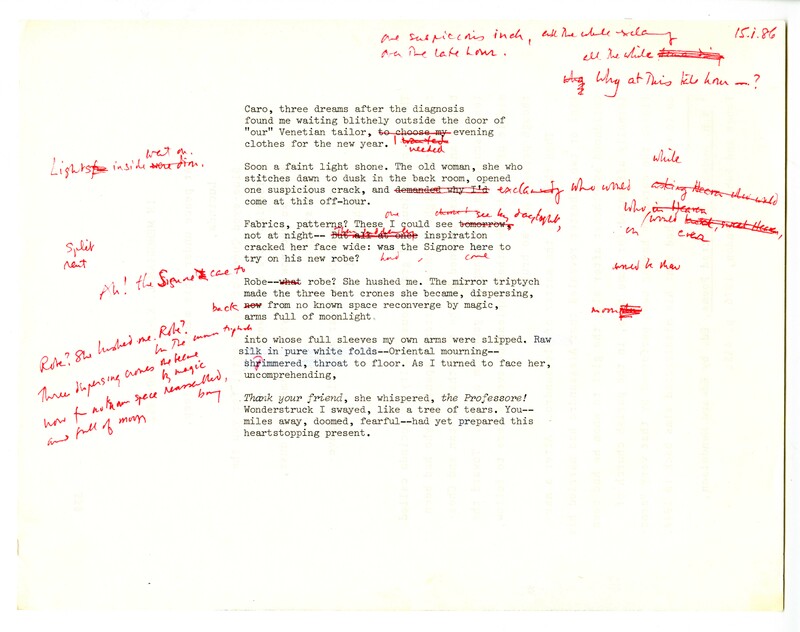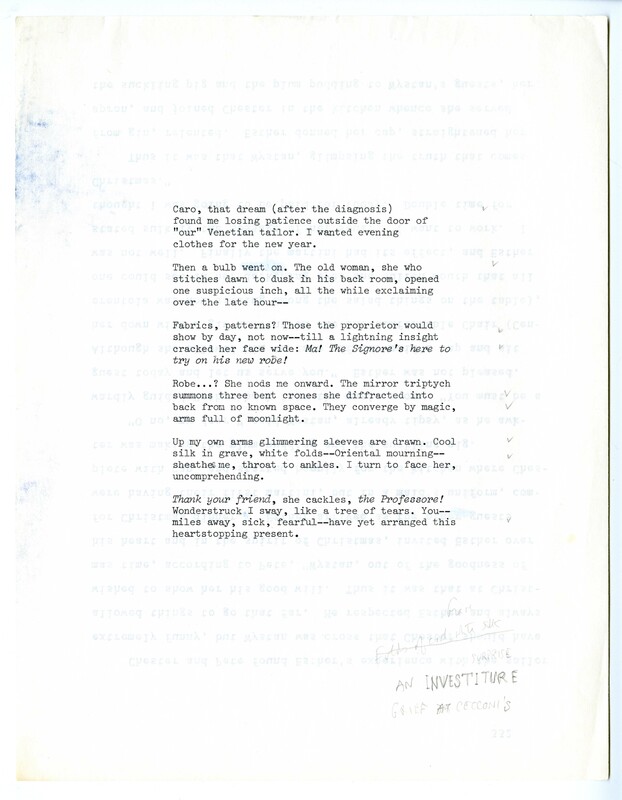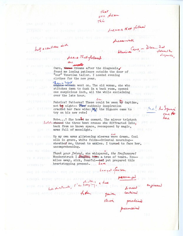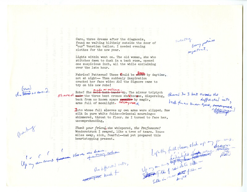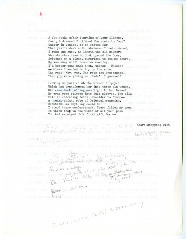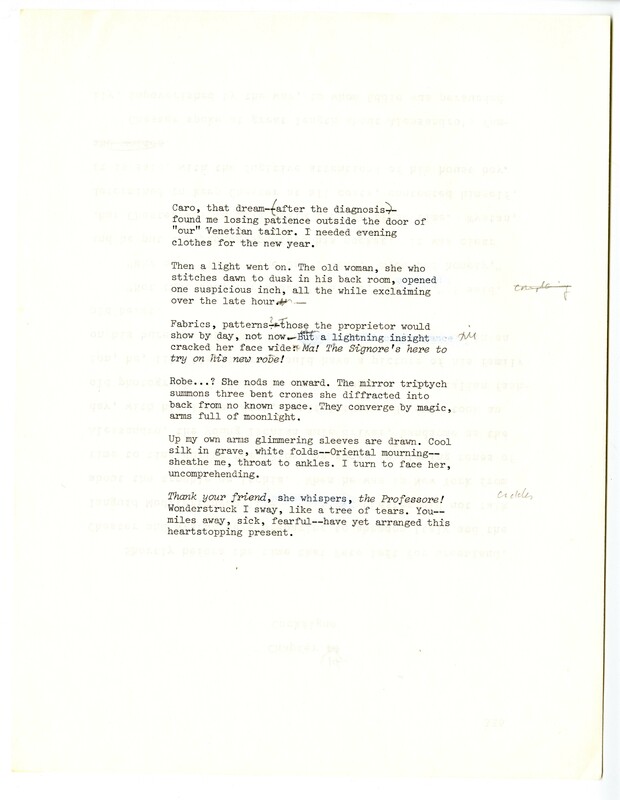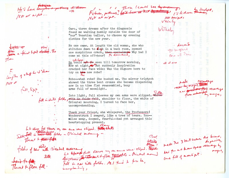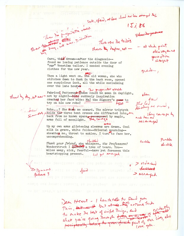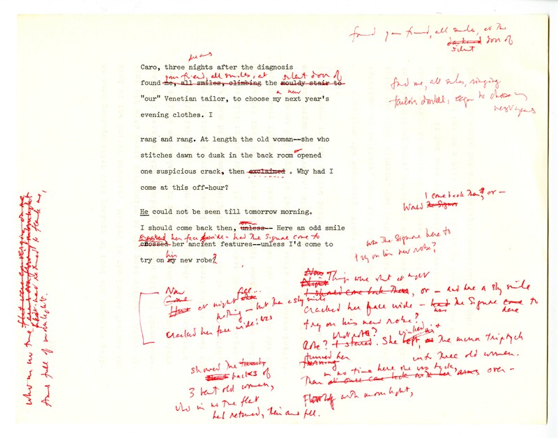 9) "Caro, three nights <dreams> after the diagnosis" Revisions in ink. See a transcription at the Transcriptions link in left margin.