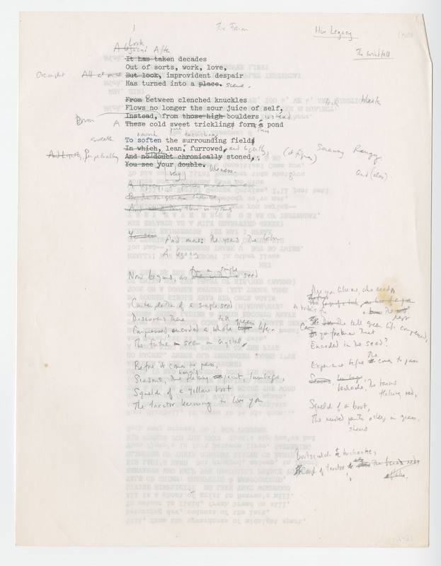 19 Verso) "The Farm. The legacy. A windfall." Pencil. Perhaps a draft of Part 3 ("Future Apples") of "Peter."