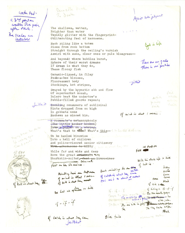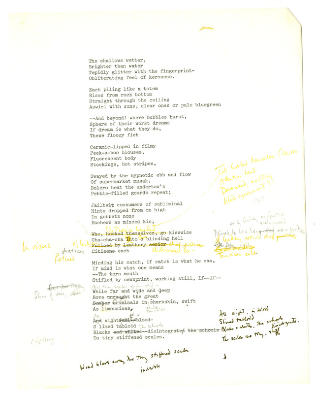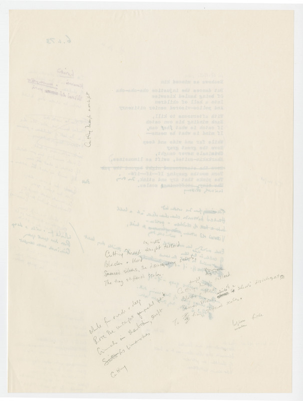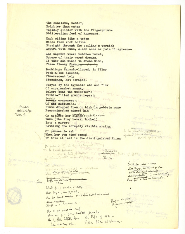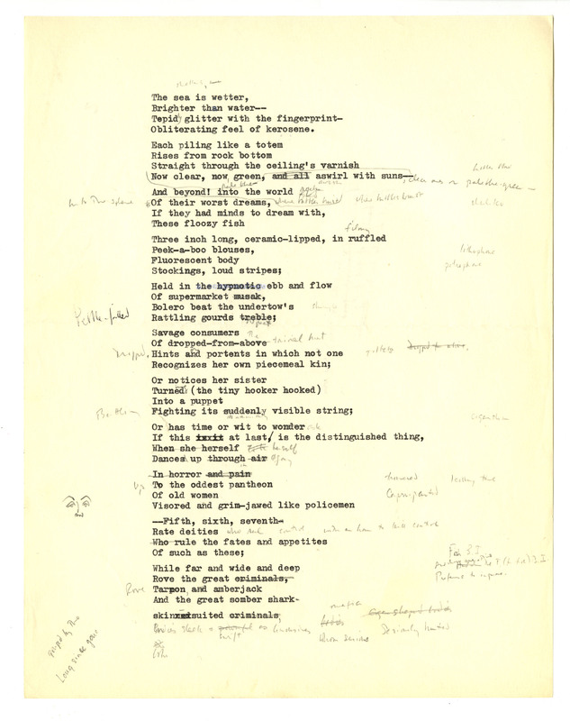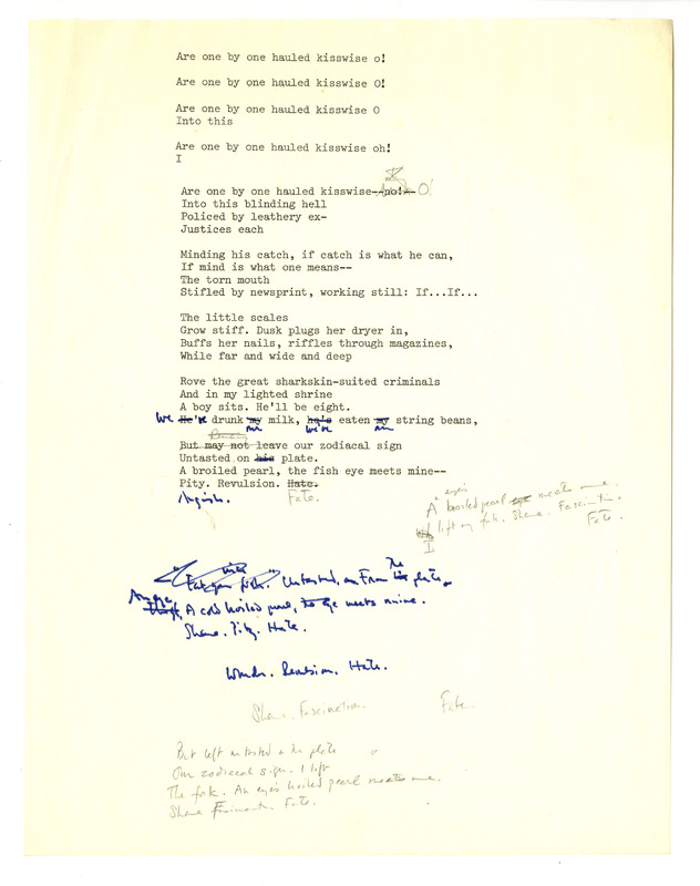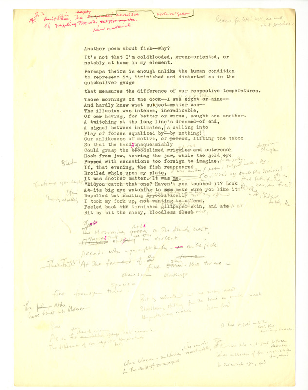 4) "never-outgrown revulsion." "Reverence for life?" "Another poem about fish--why?" Ink, pencil.