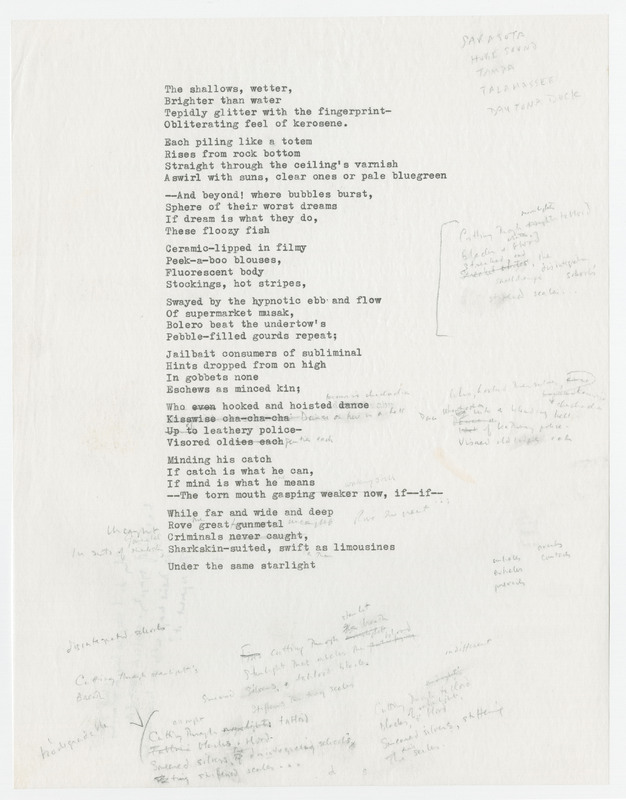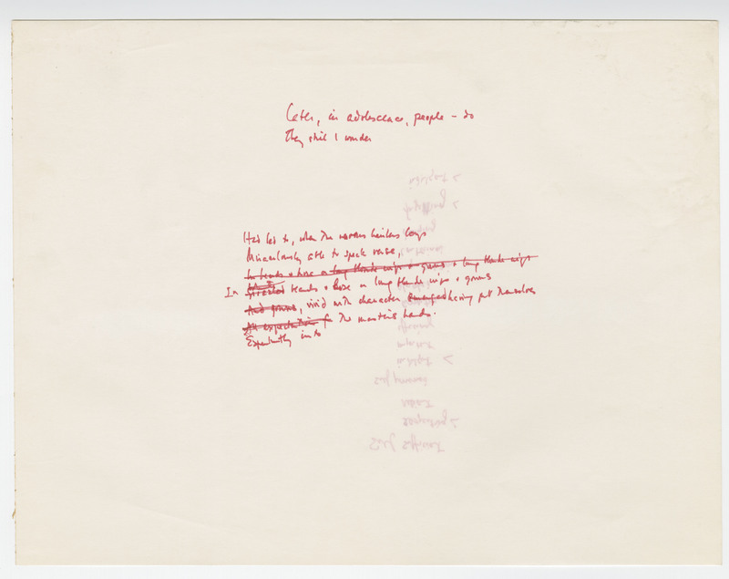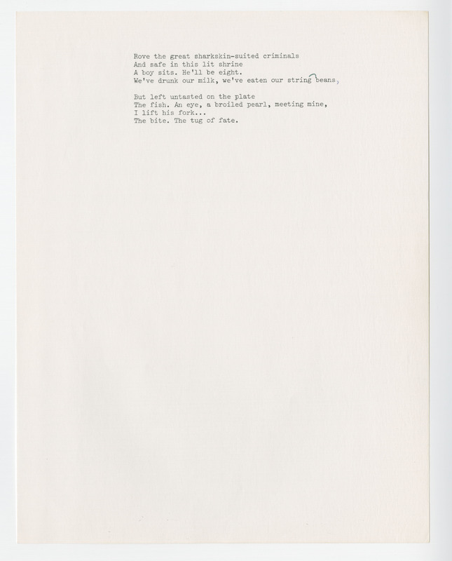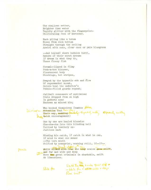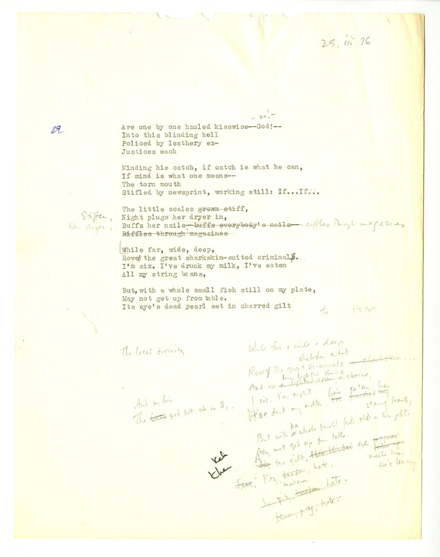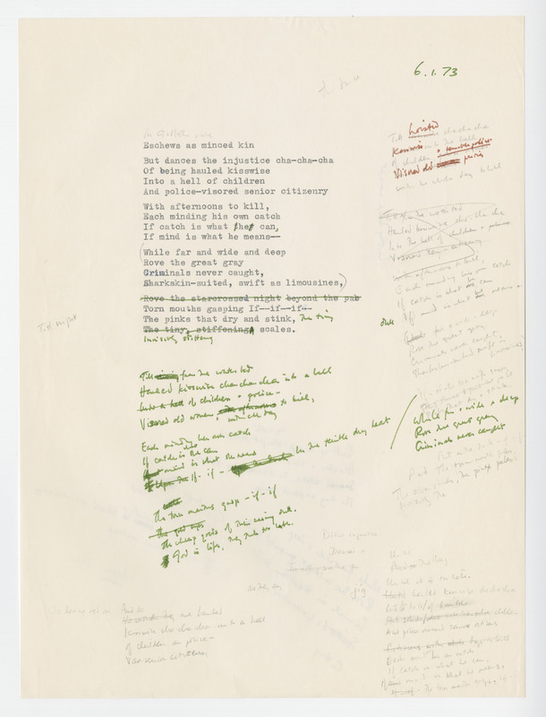 4) "never-outgrown revulsion." "Reverence for life?" "Another poem about fish--why?" Ink, pencil.