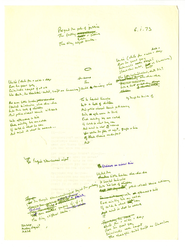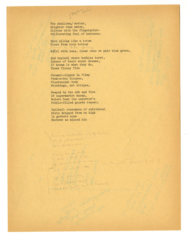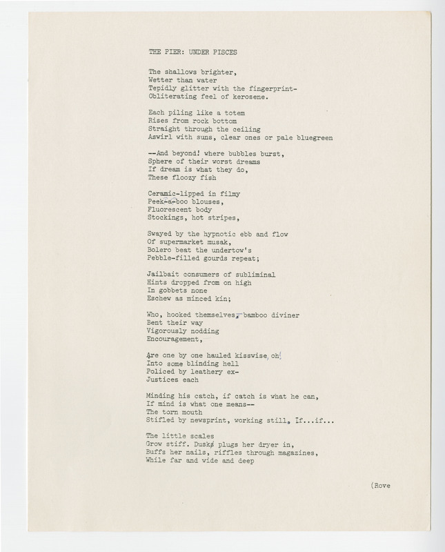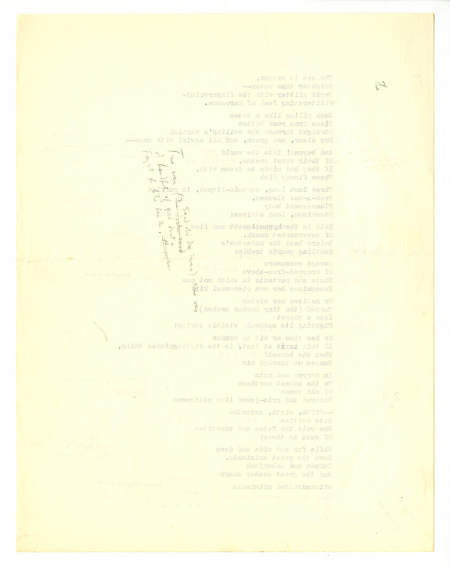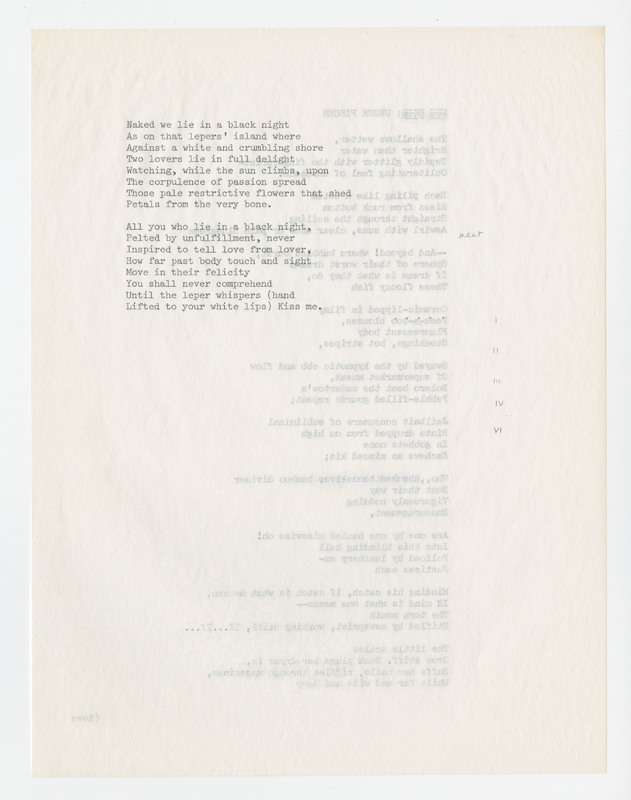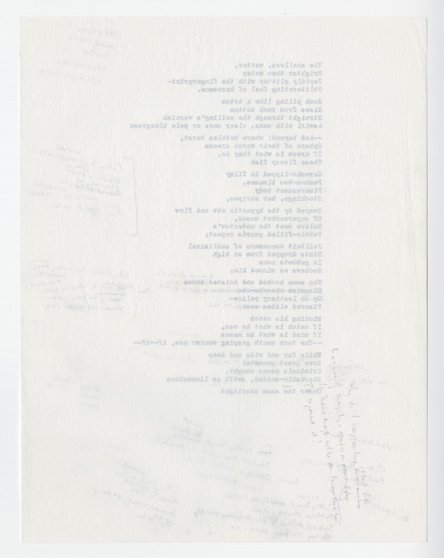 18 Verso) "THE PIER: UNDER PISCES. Naked we lie in black night." Pencil. Unidentified poem.