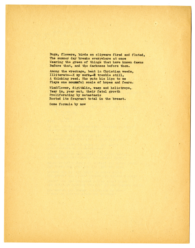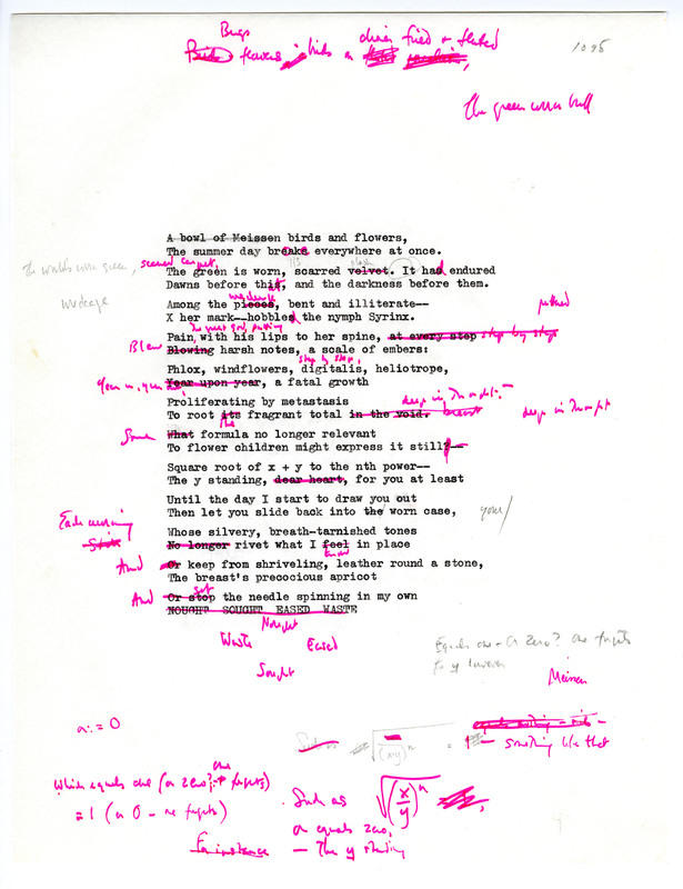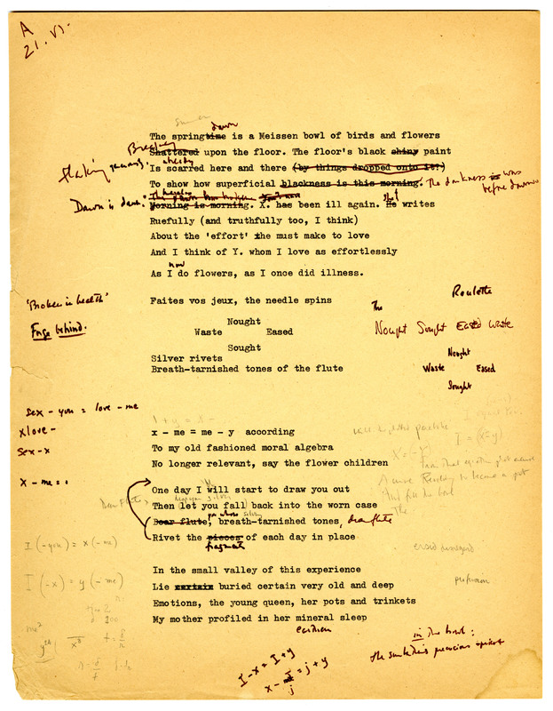 1) "A 21.vi. The springtime <dawn> is a Meissen bowl." Ink, pencil, draft paper.