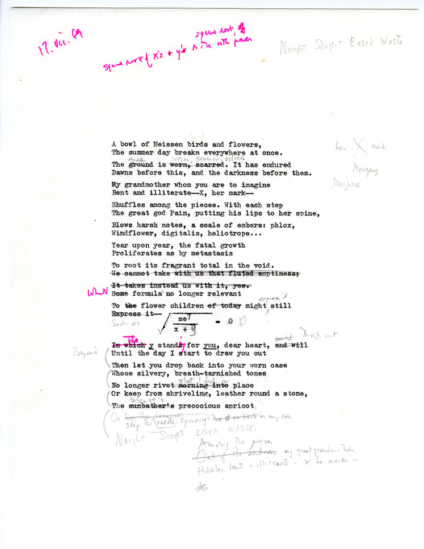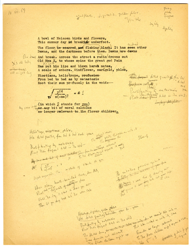 4) "10 vii.69. A bowl of Meissen birds and flowers." Pencil, draft paper.