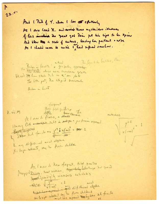 2) A 22.vi. "And I think of when I love." Ink, pencil, draft paper.