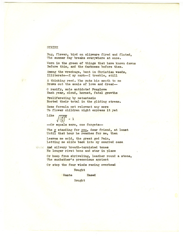16) SYRINX. Bug, flower." Pencil, bond paper.