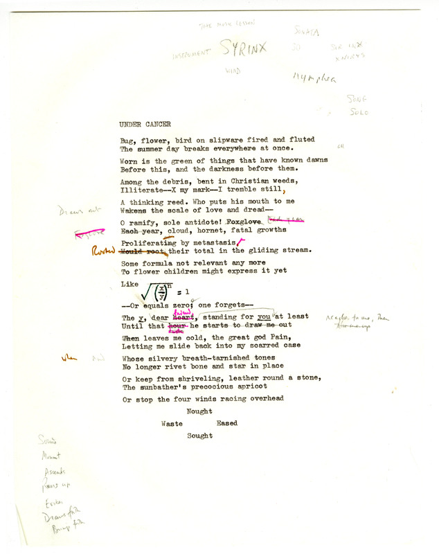 14) "UNDER CANCER. toccatas springtly from the fingertips." Pencil, bond paper.
