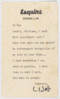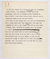 Joy Williams notes on Guggenheim Fellowship Typescript note with corrections -