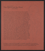 “an excerpt from The Quick and the Dead” An excerpt about baby clothes and an illustration of a baby mummy are featured on this letterpress broadside printed to commemorate a campus reading by Williams. -