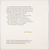Excerpt from “Escapes” Small broadside featuring a humorous excerpt from the title story of "Escapes," served to commemorate Williams’ 2002 residency at Washington University. -