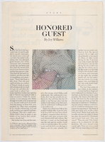 "Honored Guest" Tear Sheet First page of Joy Williams' short story, "Honored Guest," as it appeared in Harper's Magazine, with an illustration by David Johnson. -