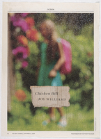"Chicken Hill" Typescript and Note from Editor Magazine page with graphic for story by Joy Williams and note from fiction editor Deborah Treismanto -