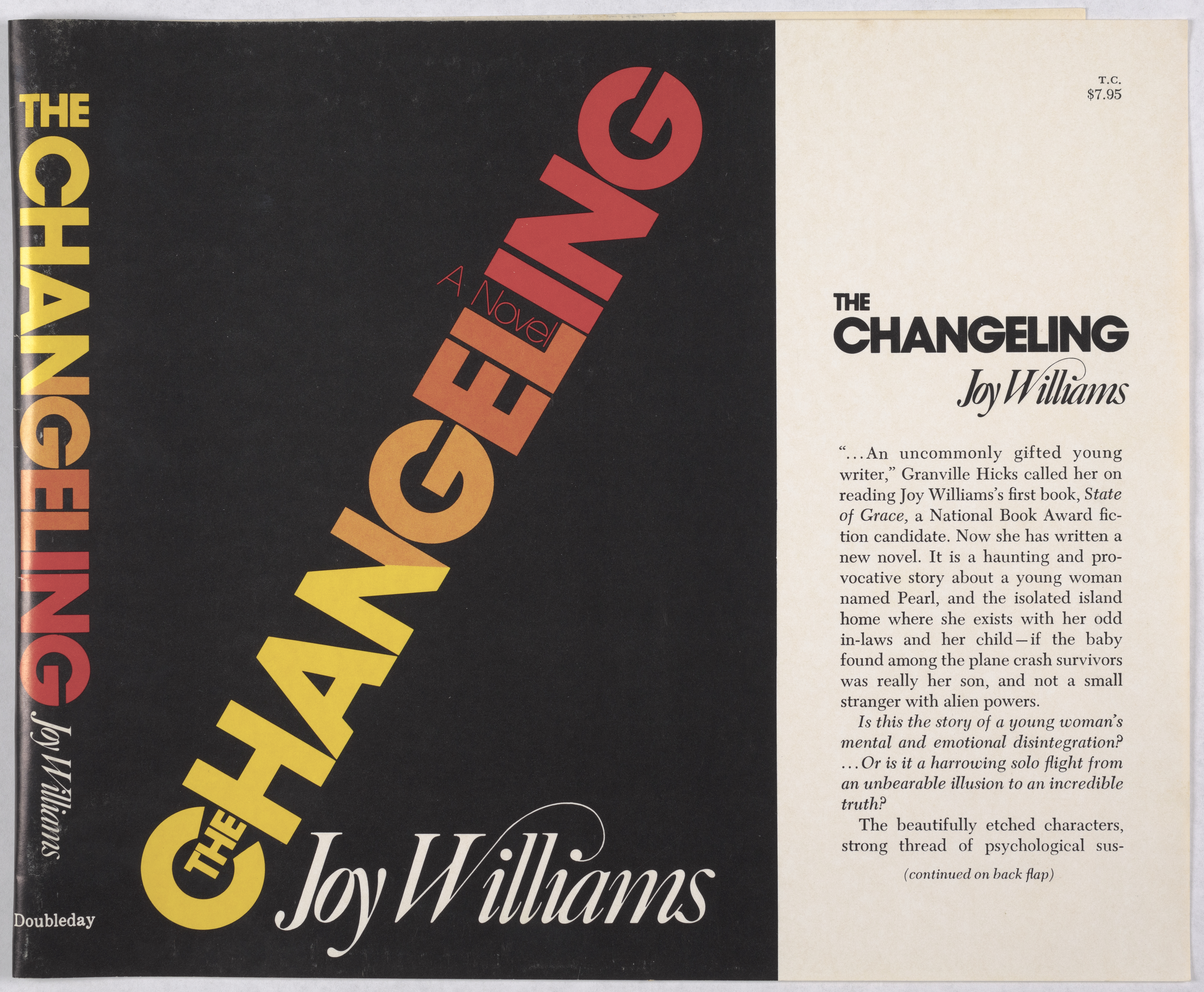 Doubleday. 2000. The Changeling Dust Jacket. "New Joy Williams Novel" Review by Anatole Broyard. Doubleday, Joy Williams: Honored Guest, accessed February 11, 2026, https://digitalexhibits.library.wustl.edu/s/joy-williams/item/1139