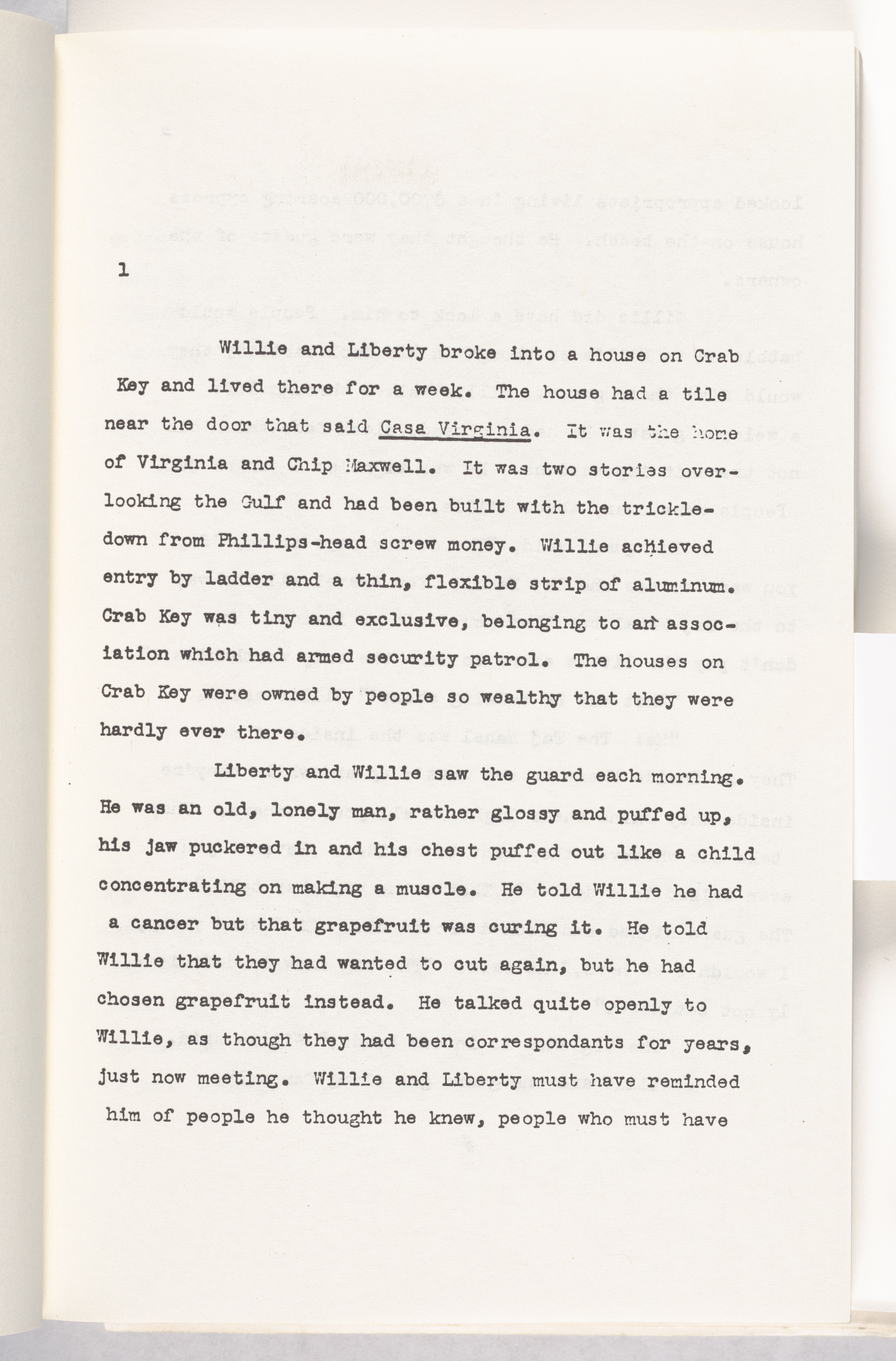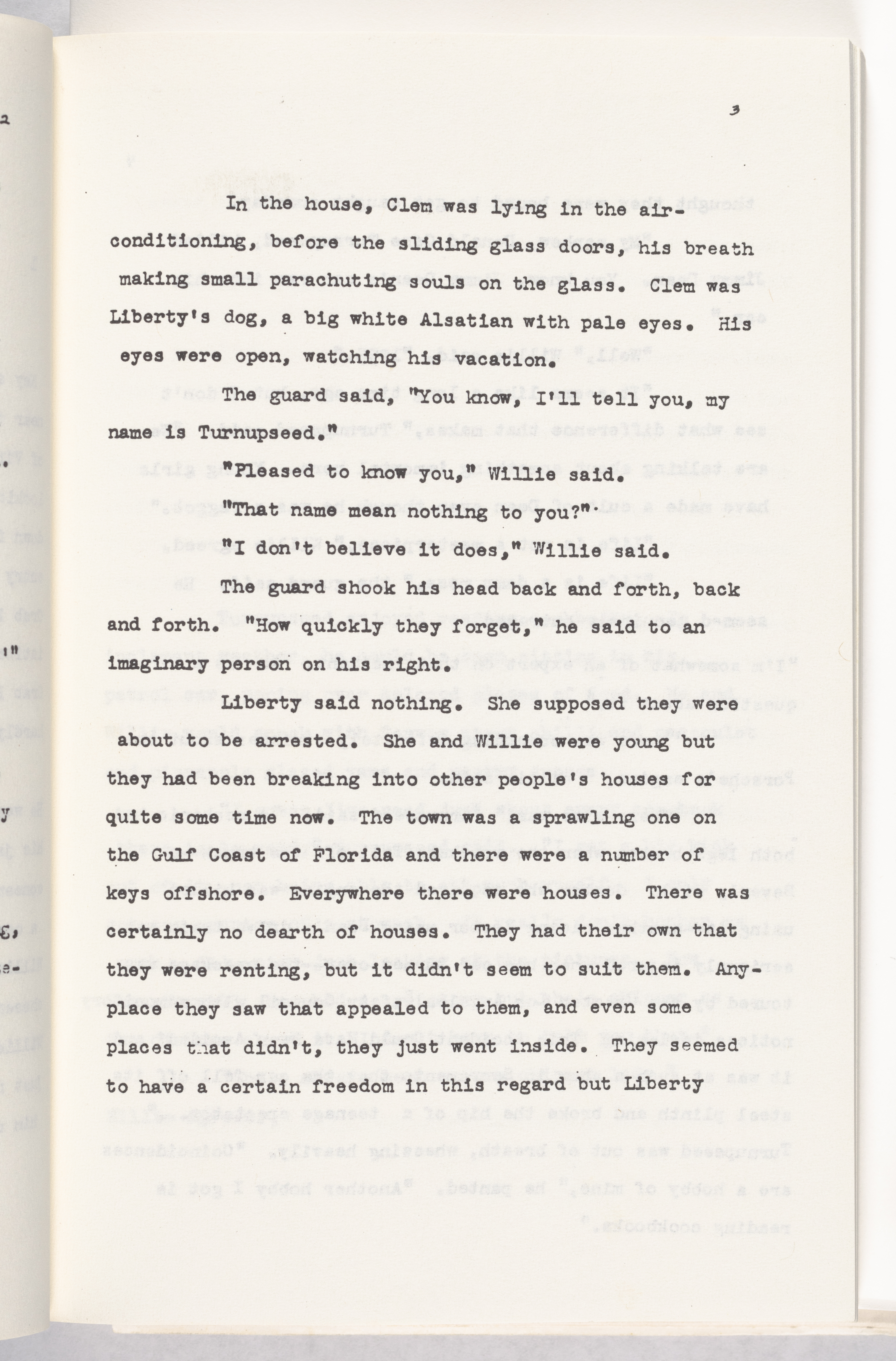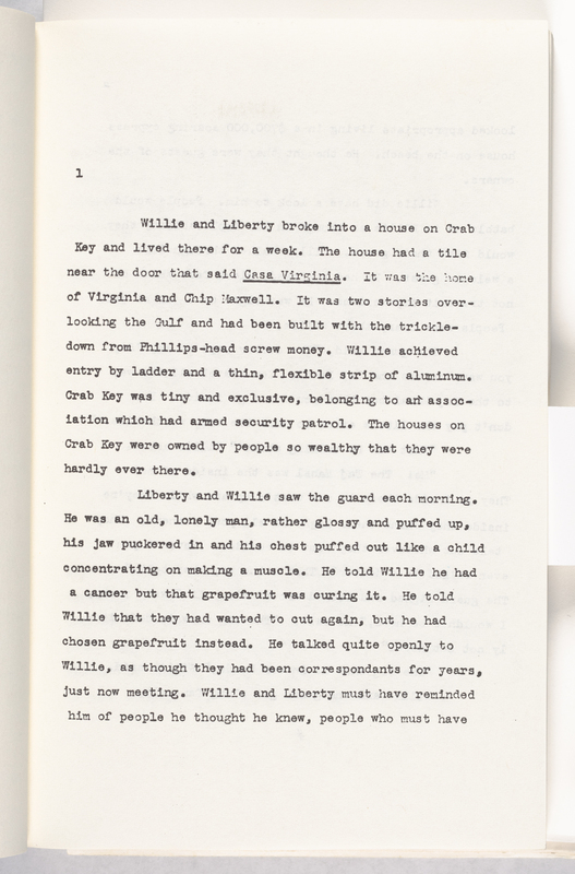 - Cover and selected pages from the bound manuscript proof of Breaking and Entering, titled "Along the Gulf"