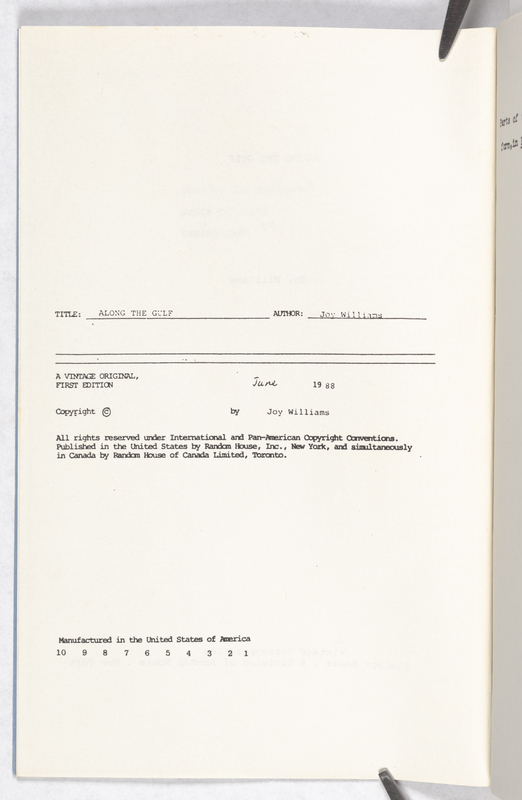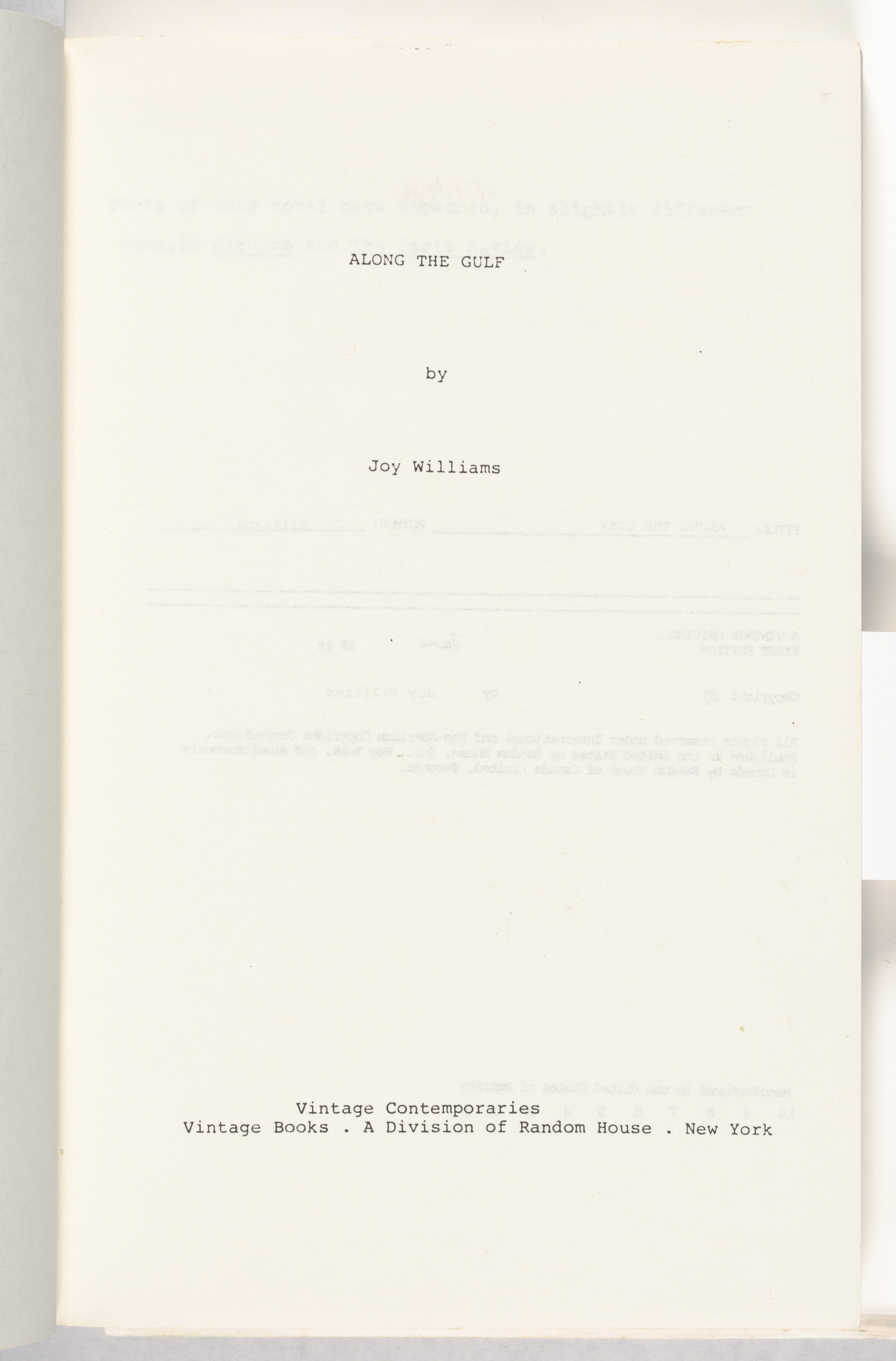 Vintage Contemporaries. 1987. “Along the Gulf”. Vintage Contemporaries, Joy Williams: Honored Guest, accessed February 12, 2026, https://digitalexhibits.library.wustl.edu/s/joy-williams/item/1144