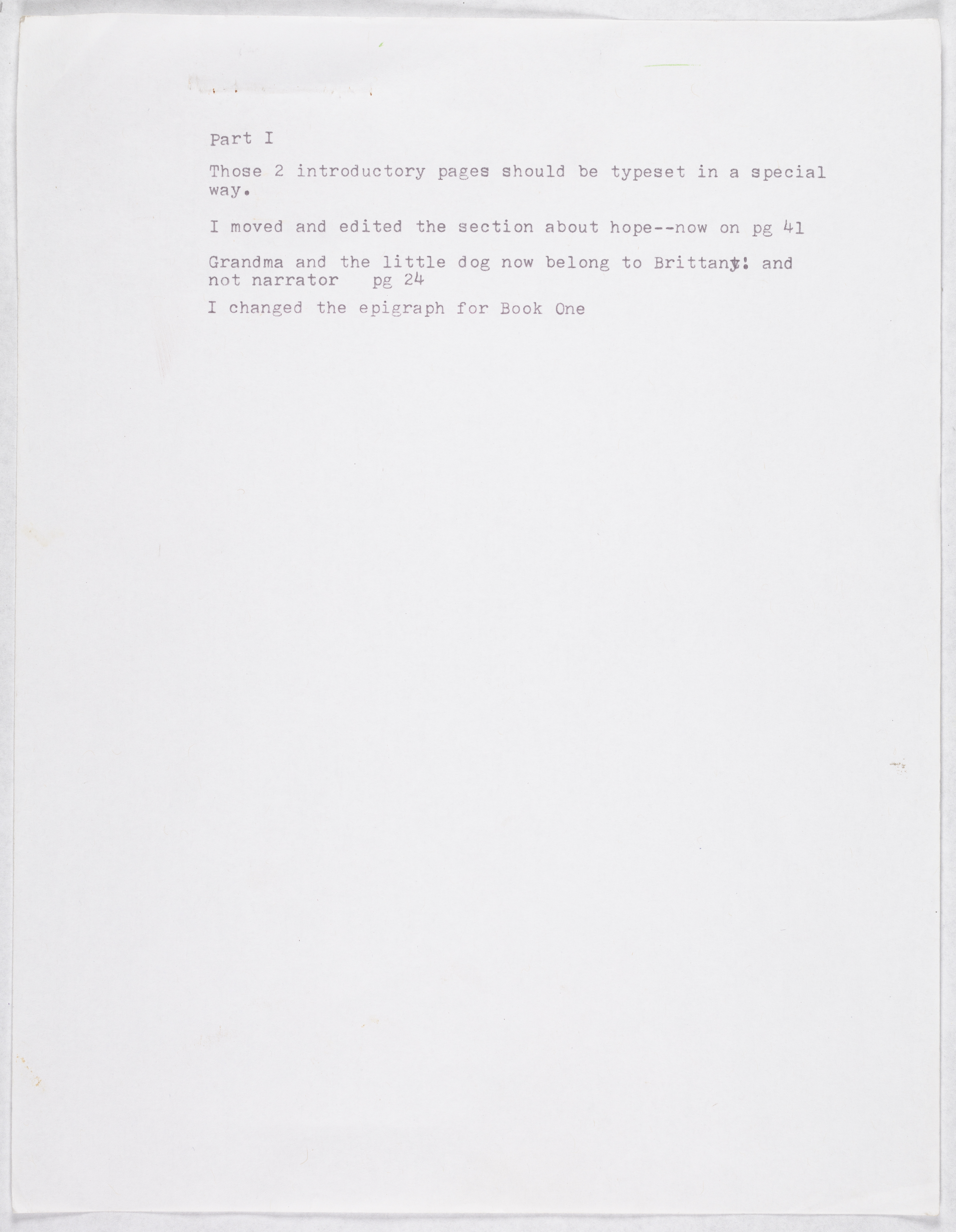 - In this cover letter for a revised typescript sent to her new editor, Williams outlines some of the changes as well as the history of the novel’s plot and characters.