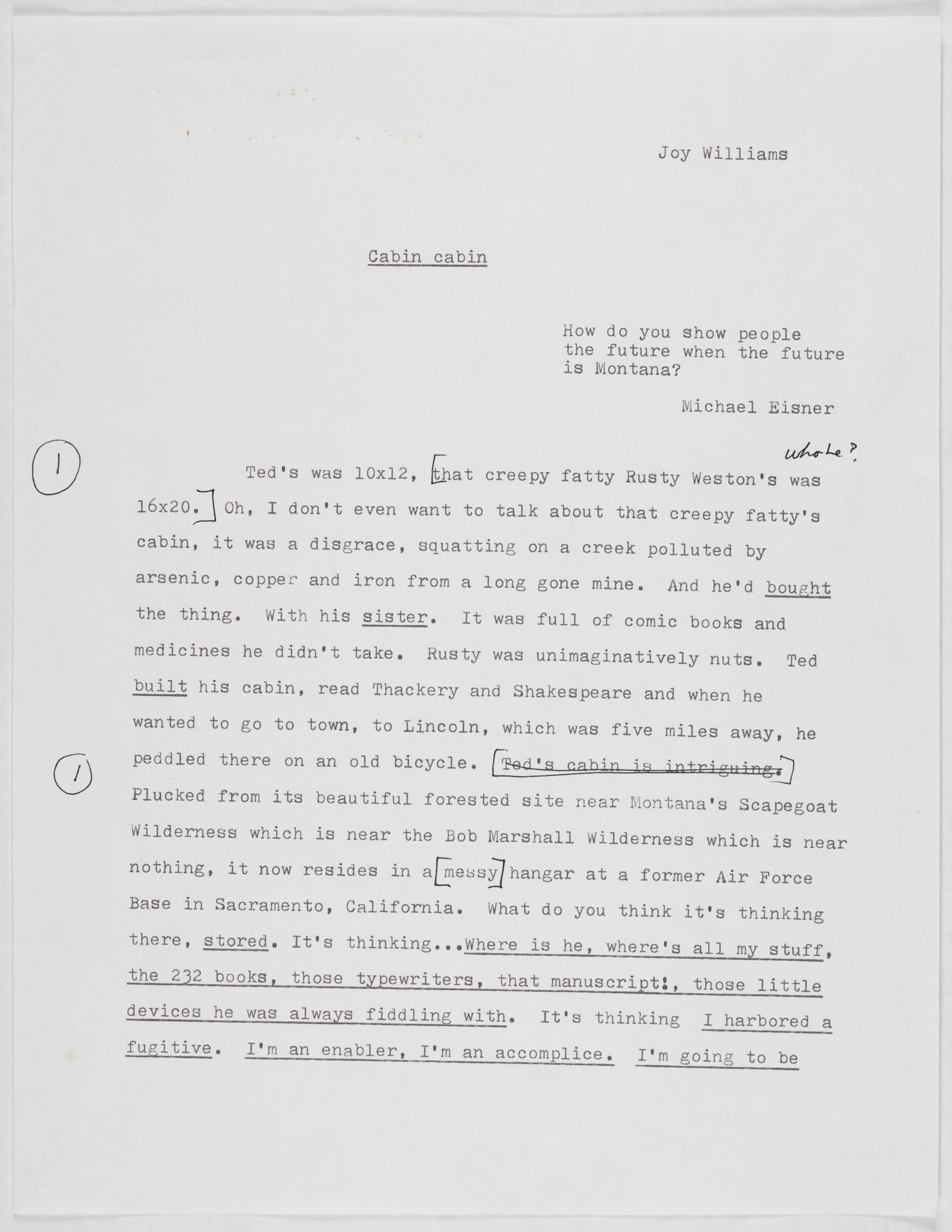 Williams, Joy, ““Cabin Cabin””, Joe, Not dated, Joy Williams: Honored Guest, accessed February 11, 2026, https://digitalexhibits.library.wustl.edu/s/joy-williams/item/1162
