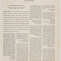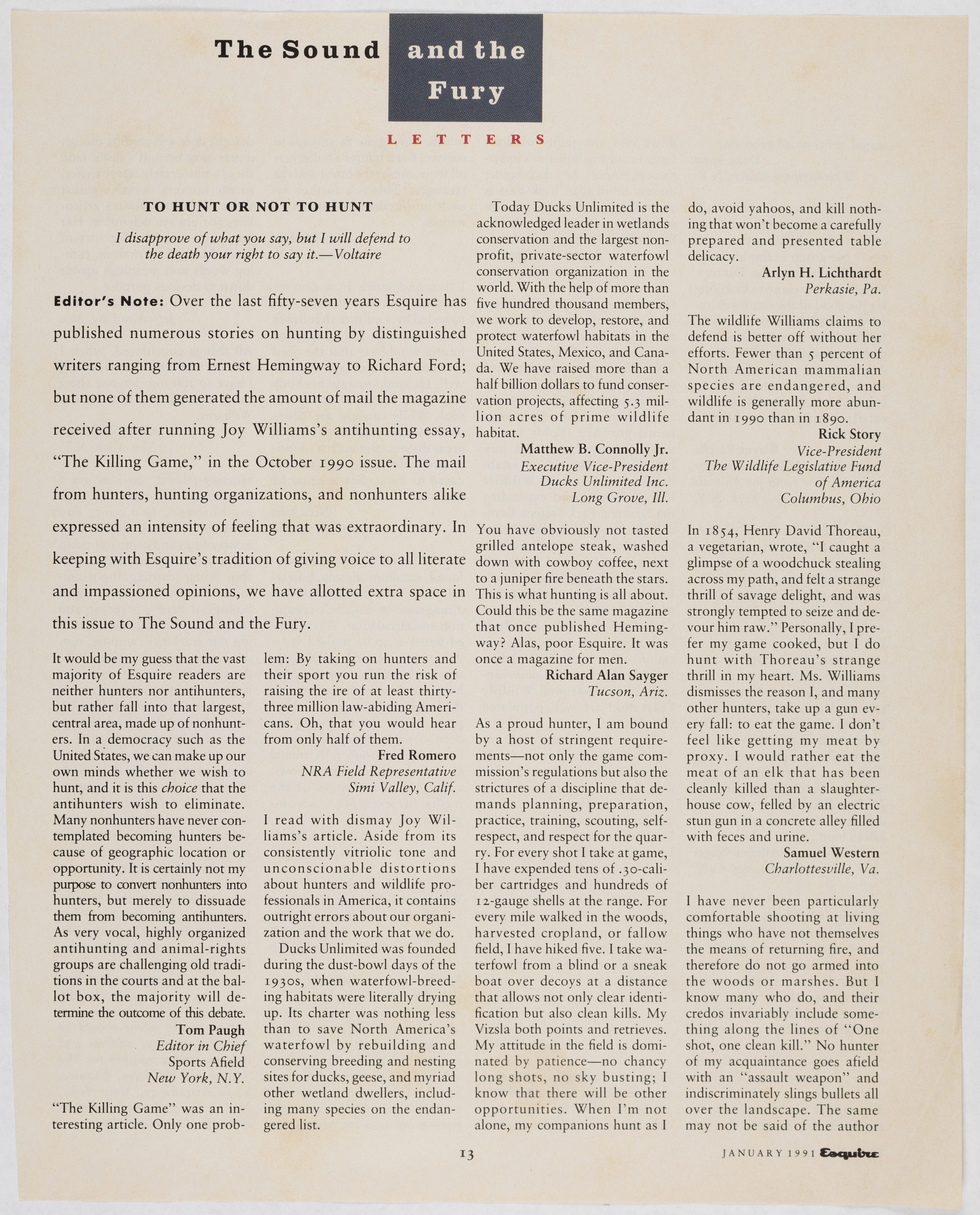 - Joy Williams essay and Letters to the Editor from two issues of Esquire