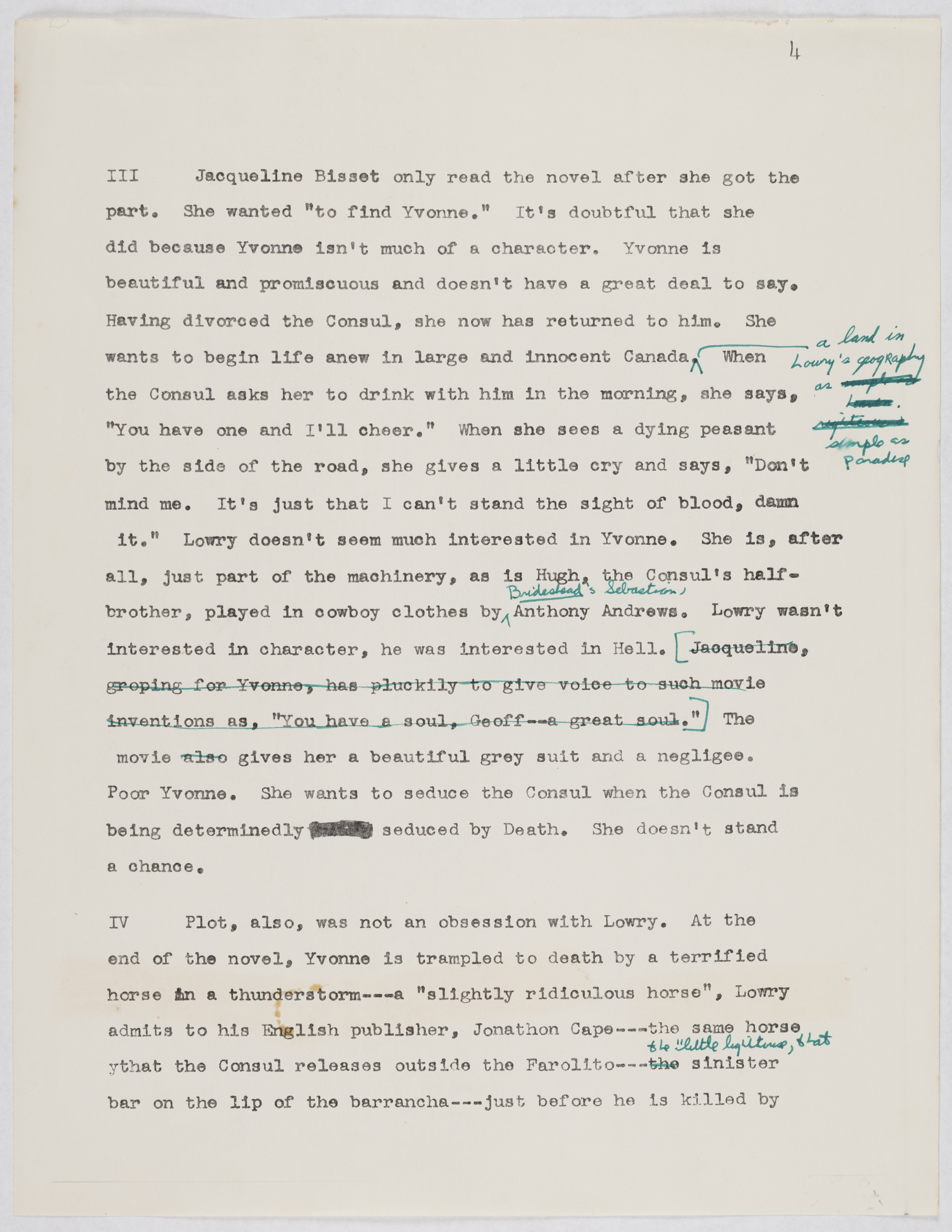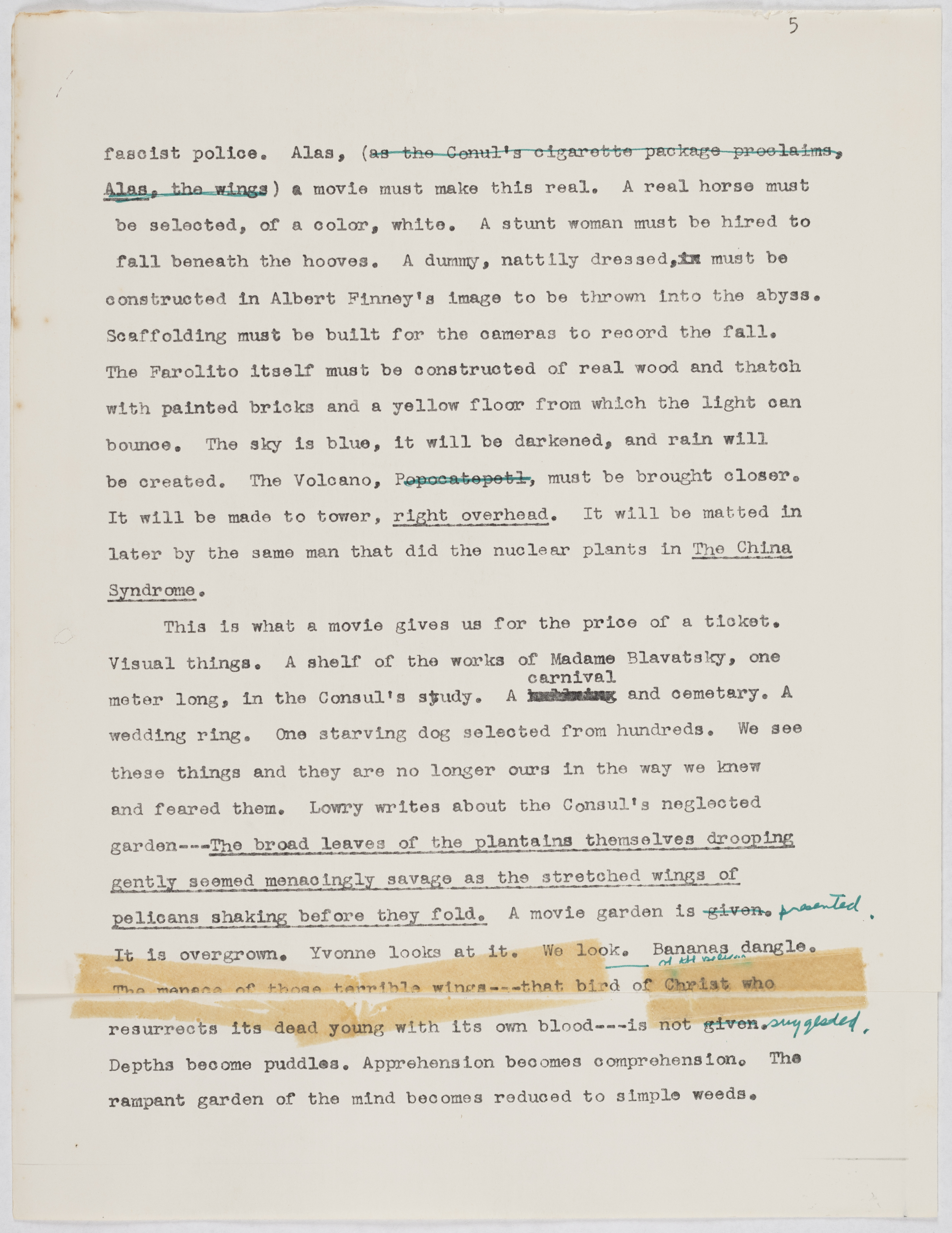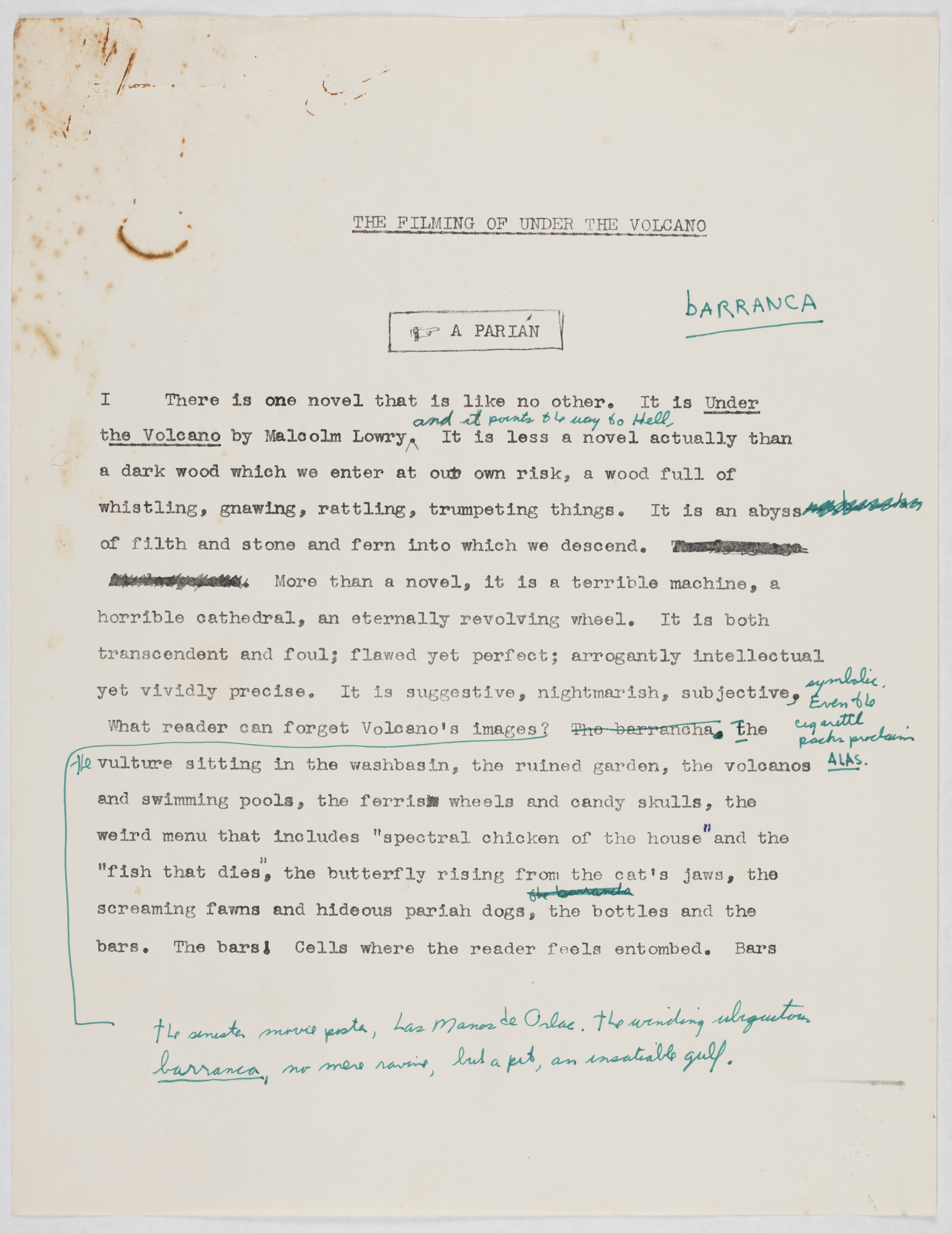 Williams, Joy, ““A Brick: The Movie Version of Under the Volcano””, Not published, Not dated, Joy Williams: Honored Guest, accessed February 11, 2026, https://digitalexhibits.library.wustl.edu/s/joy-williams/item/1301