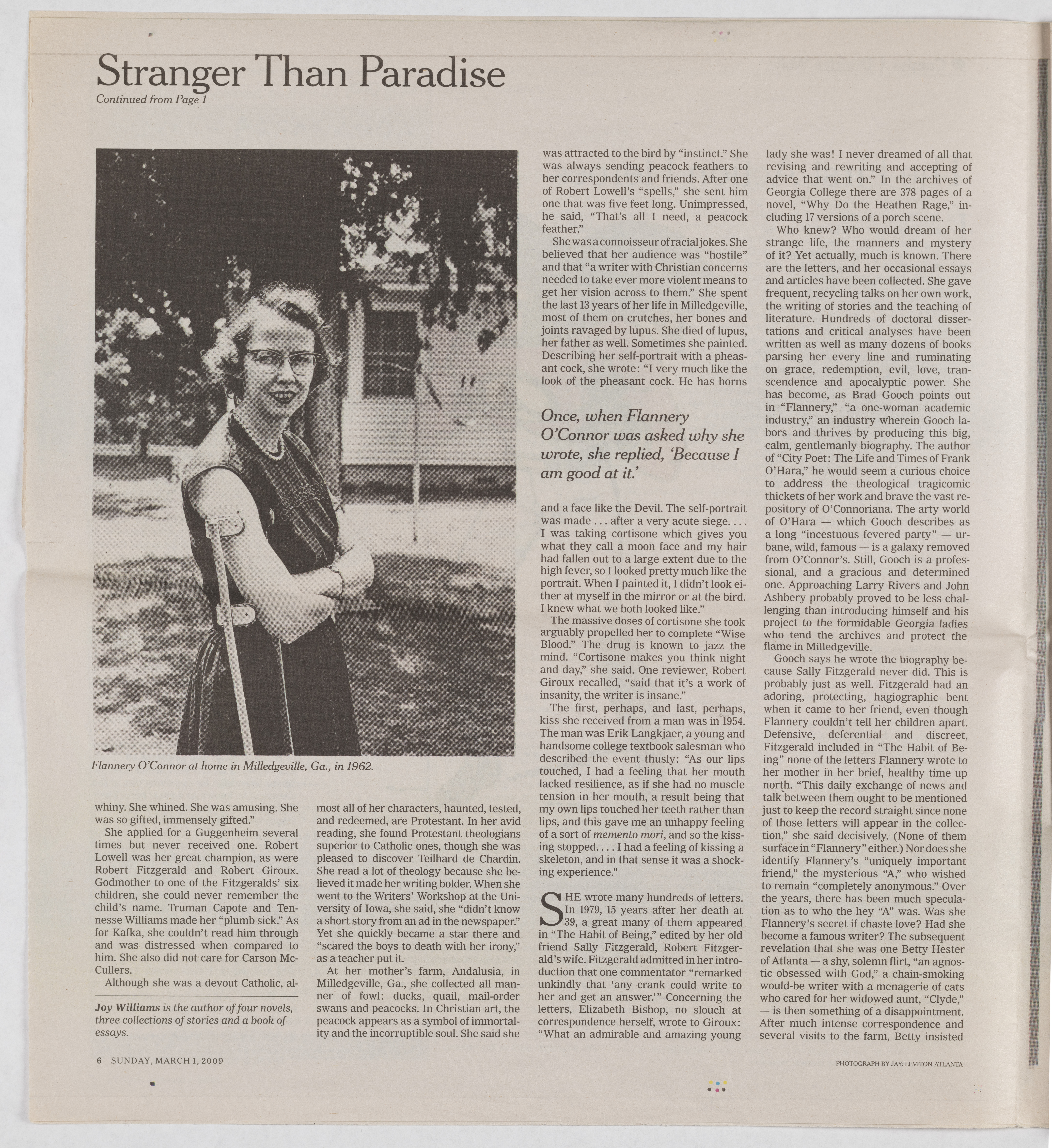 - Flannery O’Connor’s stories greatly influenced Williams as a budding writer, and here she pays homage to her in a review of a new biography.