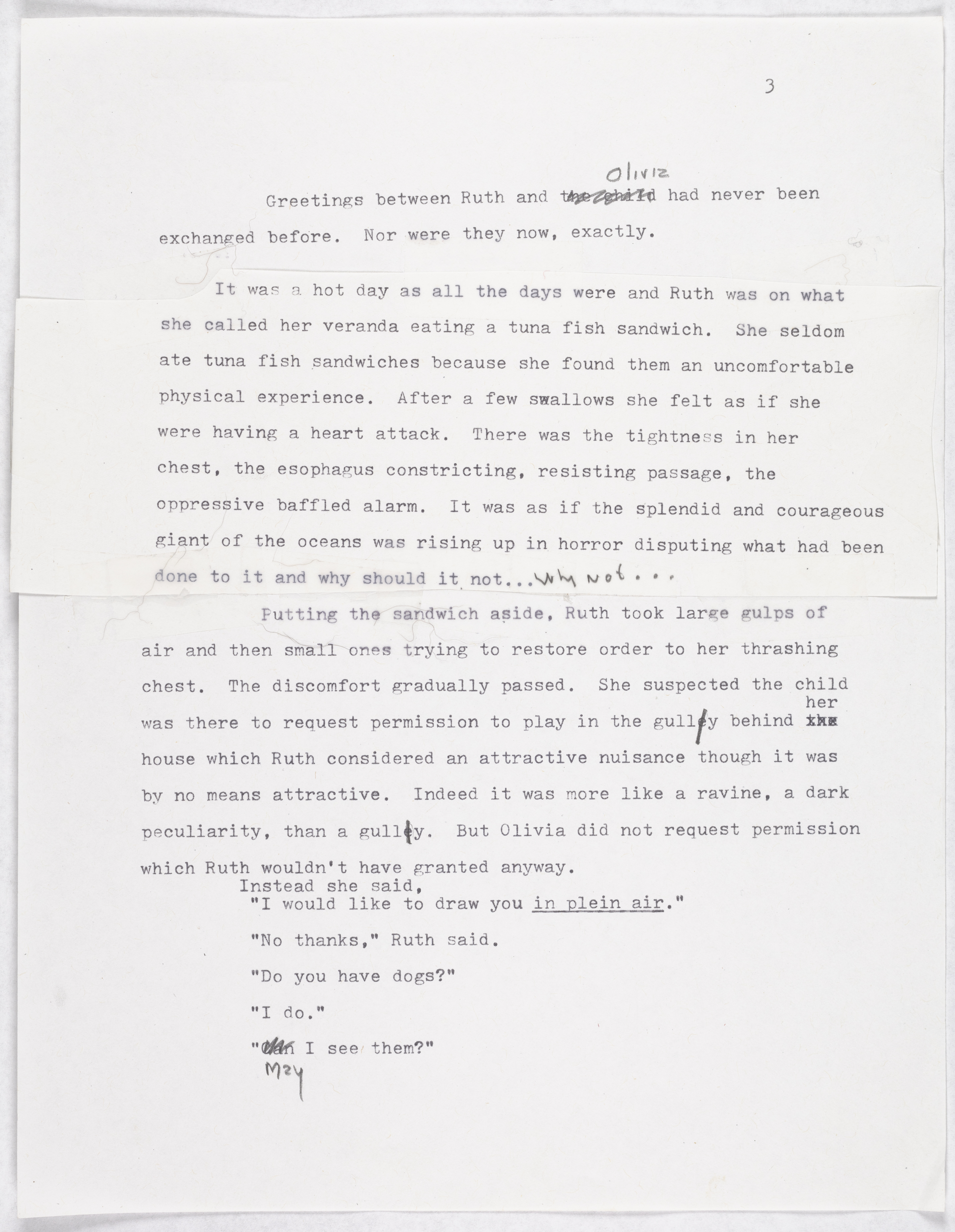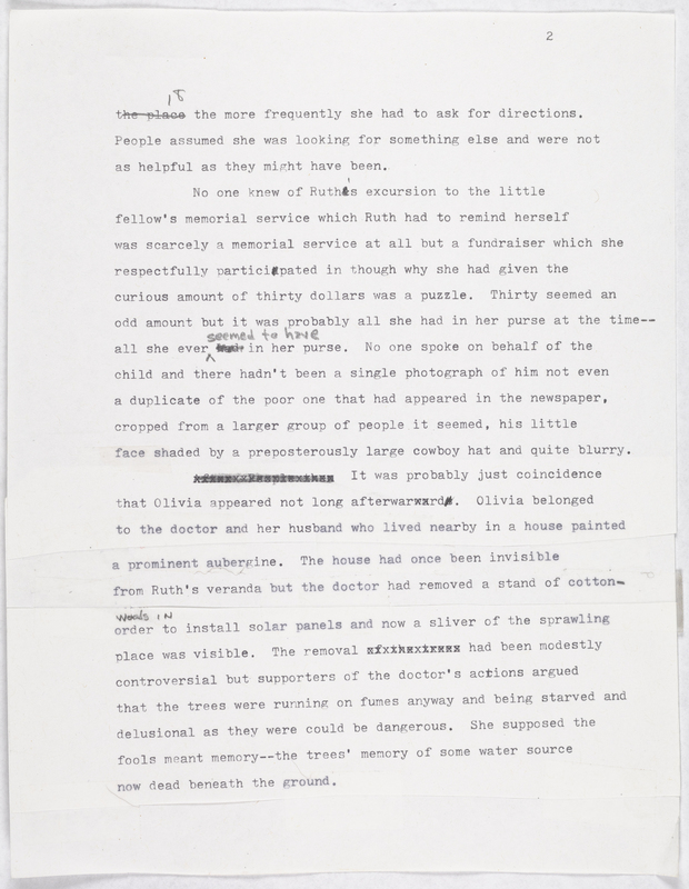 - First three pages of a 14-page draft for a Joy Williams story published in The New Yorker