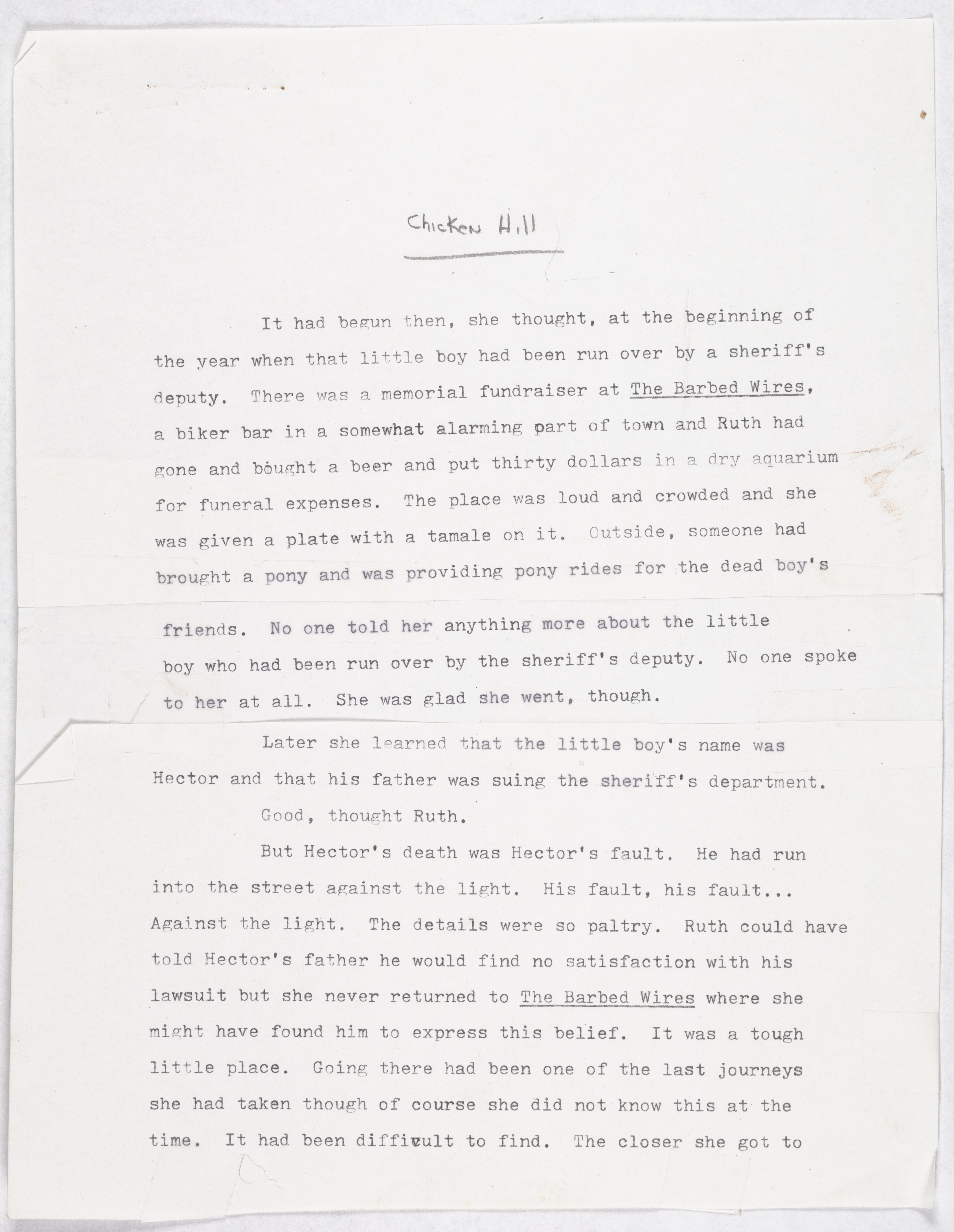 Williams, Joy, “"Chicken Hill" Typescript”, Not published, Not dated, Joy Williams: Honored Guest, accessed February 11, 2026, https://digitalexhibits.library.wustl.edu/s/joy-williams/item/912