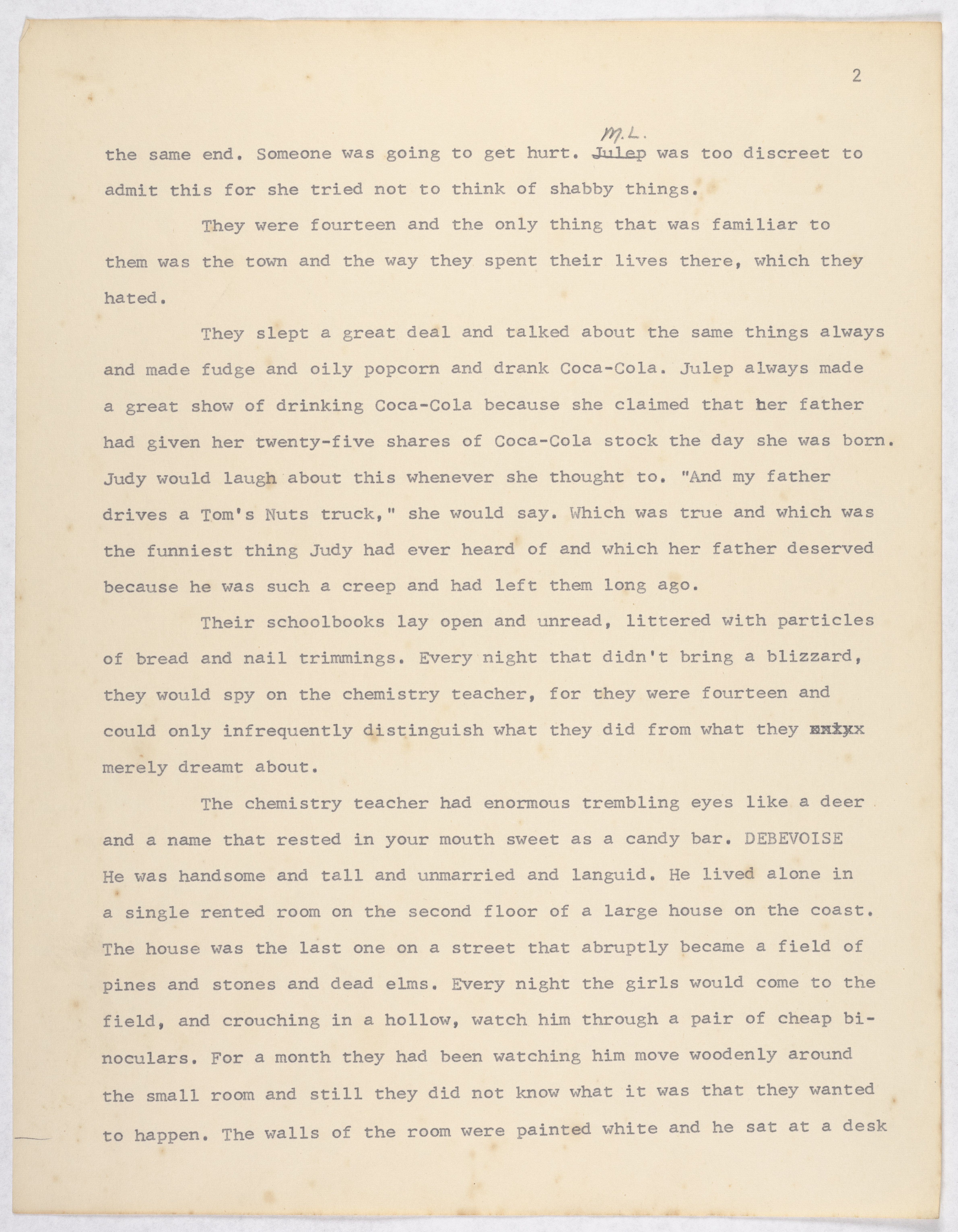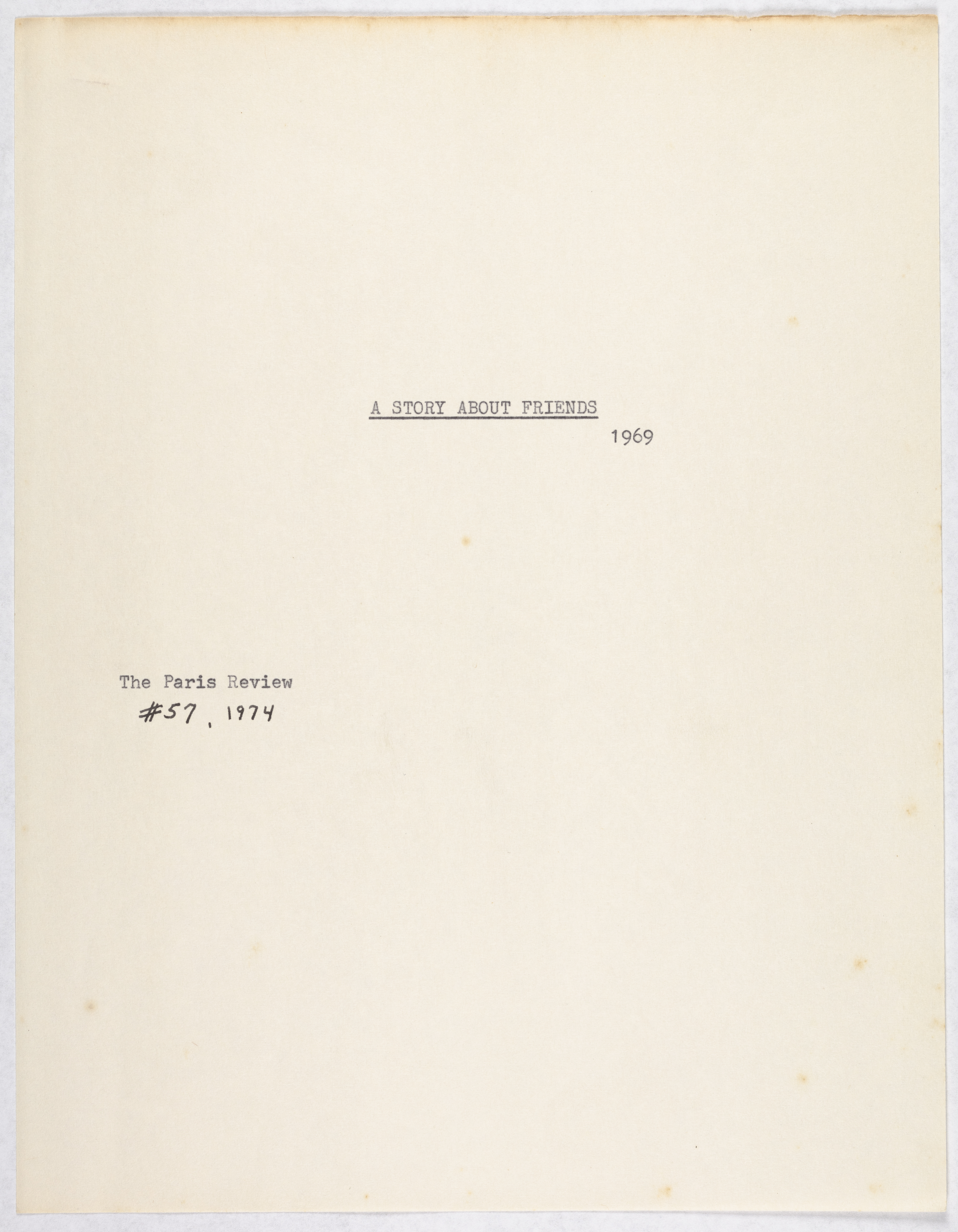 - Cover page and first three pages of a 27-page typescript draft toward an early story published in The Paris Review (Issue 57).