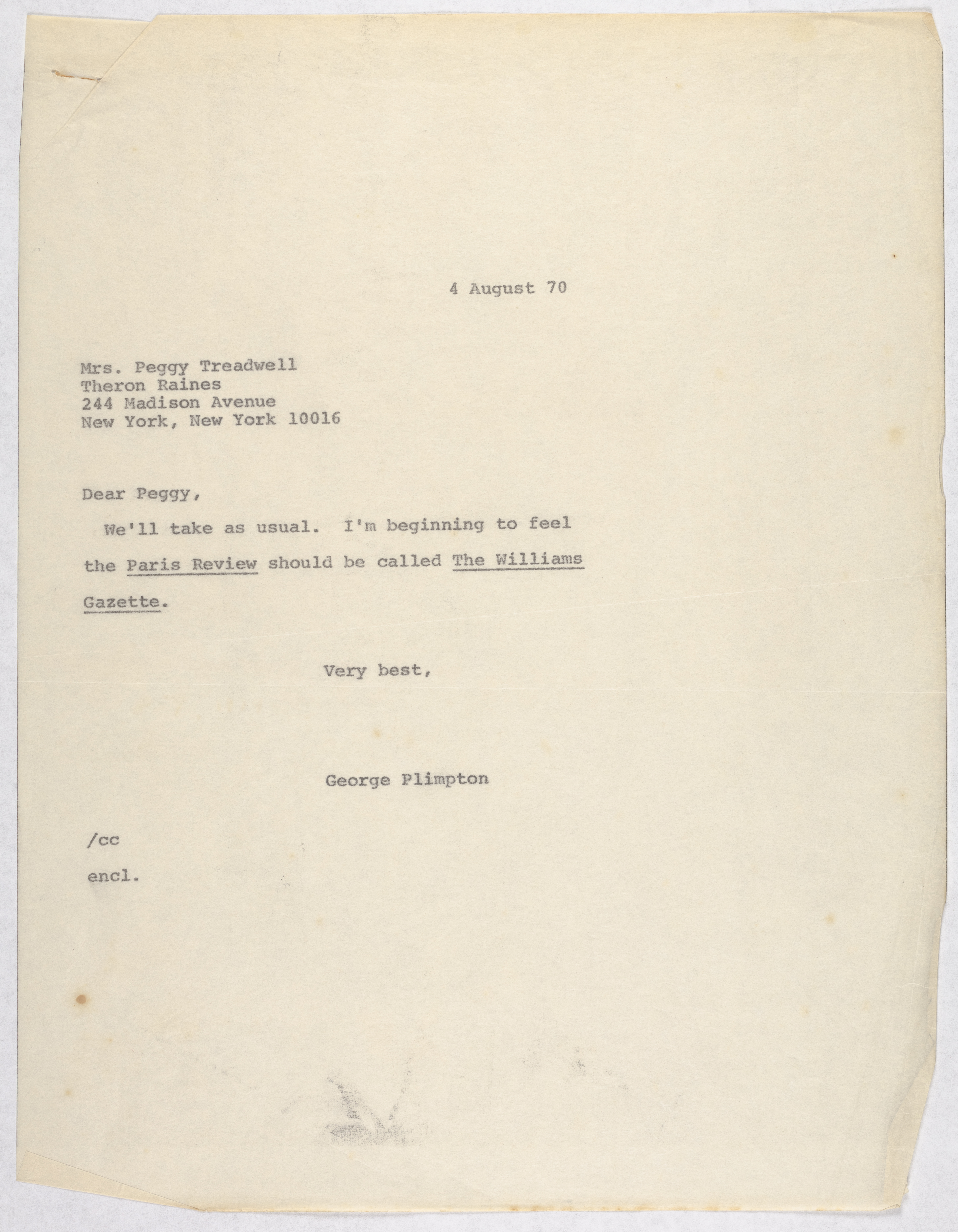 - Williams found an early and vocal supporter in George Plimpton, whose The Paris Review published “A Story About Friends” in 1974, among others in her early years as a published writer.