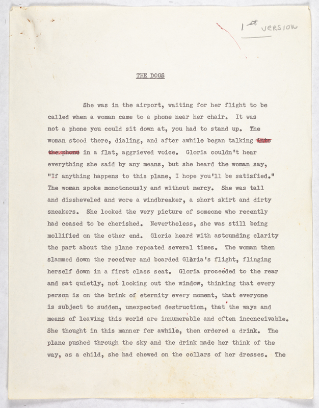 - Holograph notes and first three pages of a 22-page corrected typescript draft titled "The Dogs," which would become "The Little Winter"