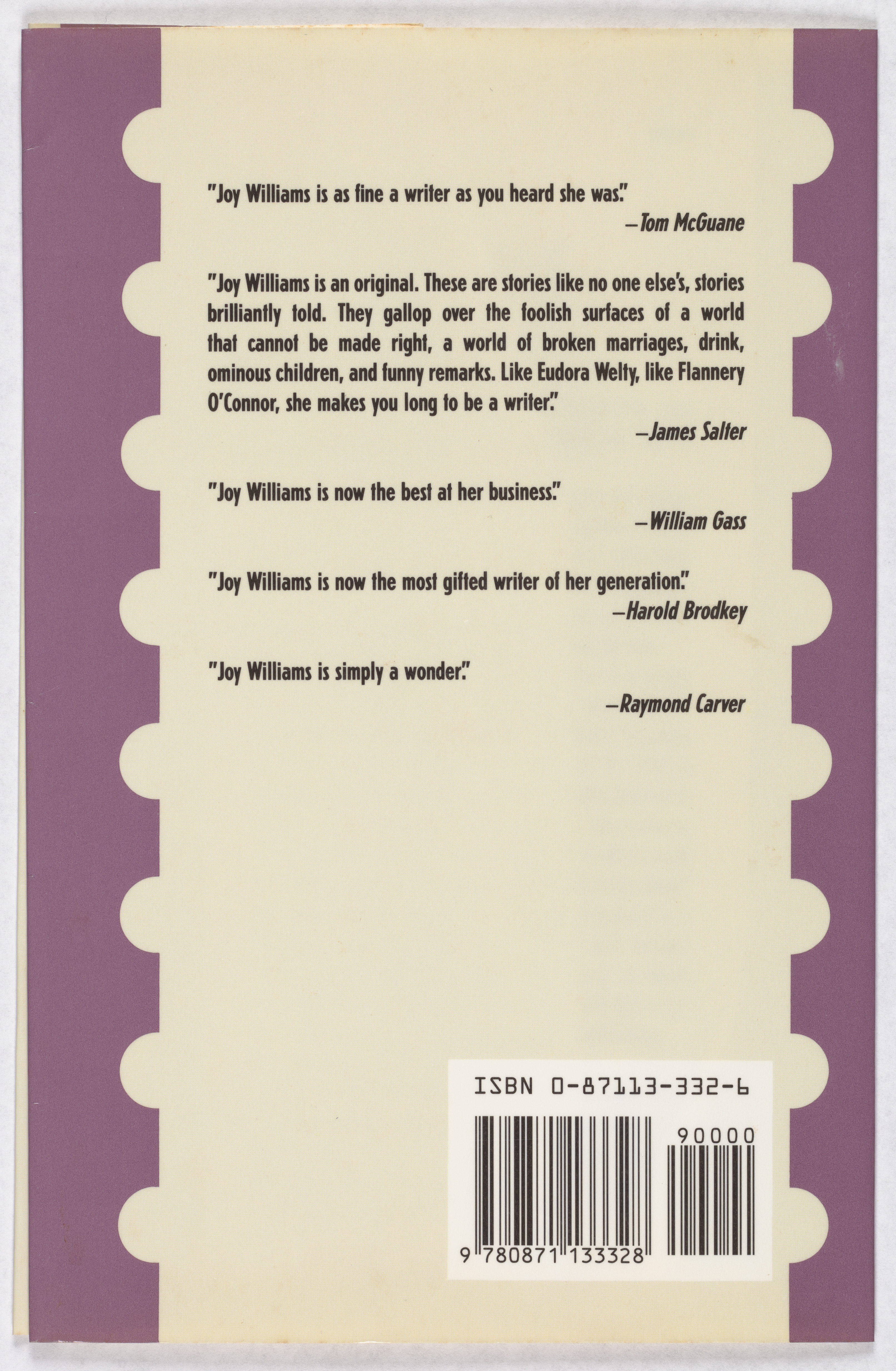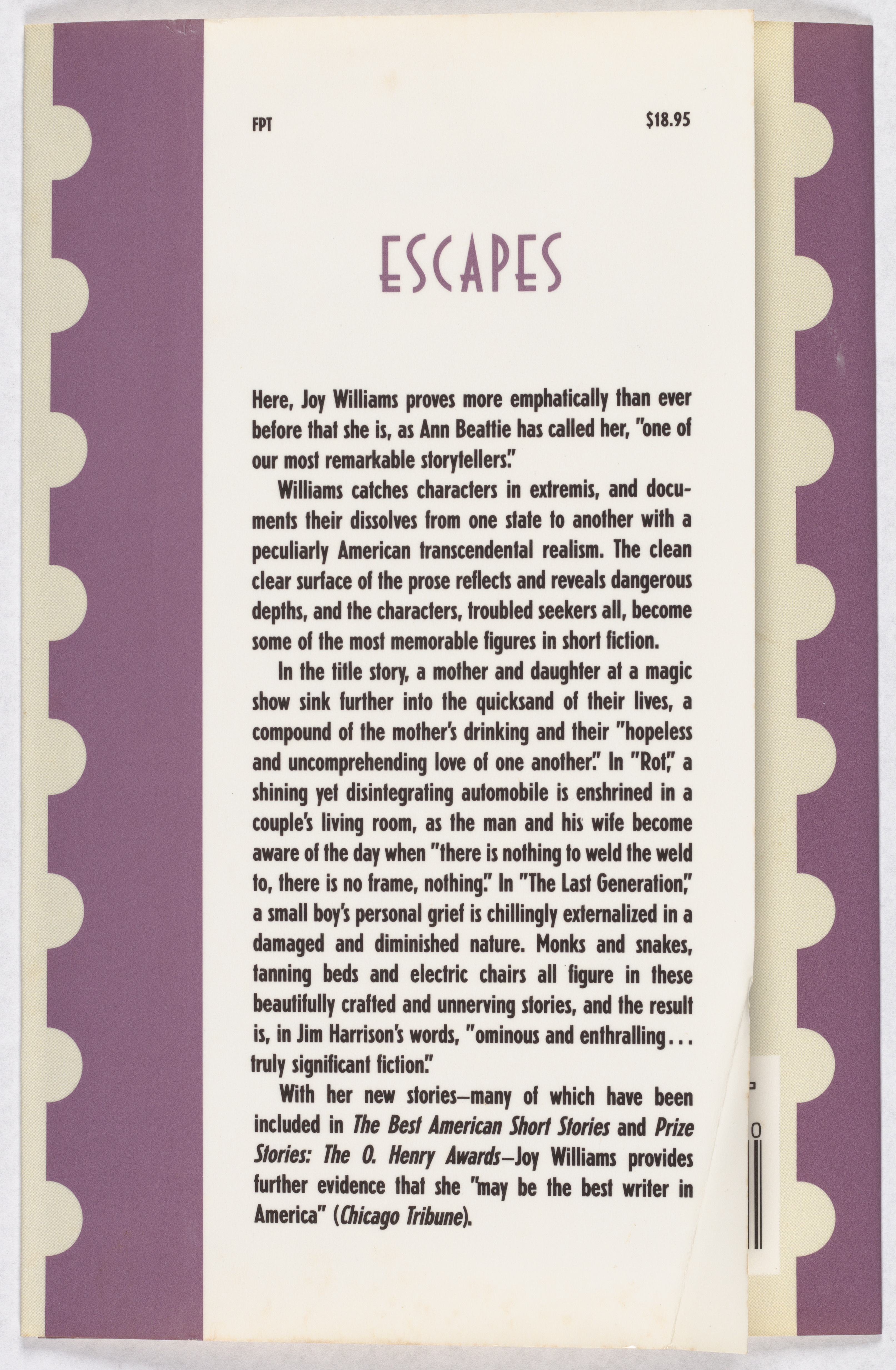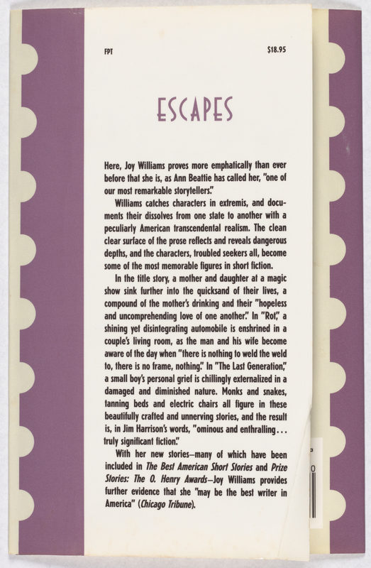 - Atlantic Monthly Press cover for Escapes, Williams' second short story collection.