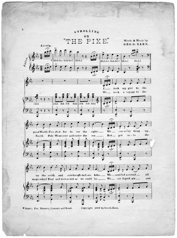 Strolling on the Pike : song / [words & music by Geo. G. Zarn].