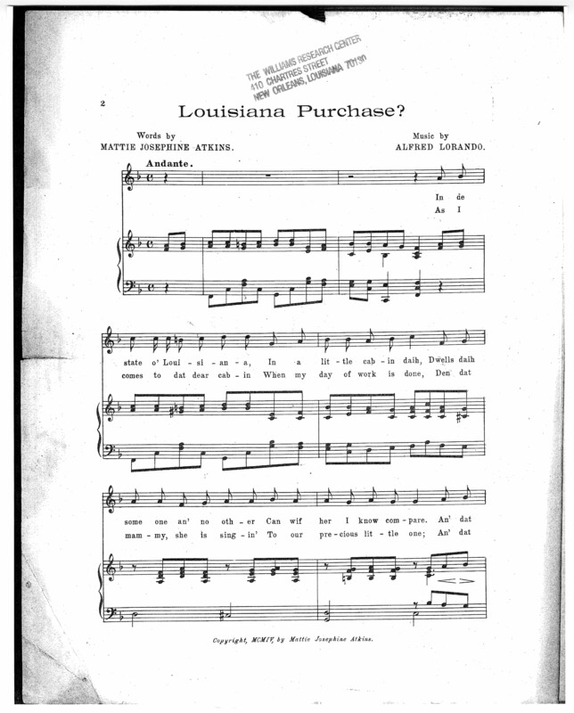 Louisiana Purchase? / words by Mattie Josephine Atkins ; music by Alfred Lorando.