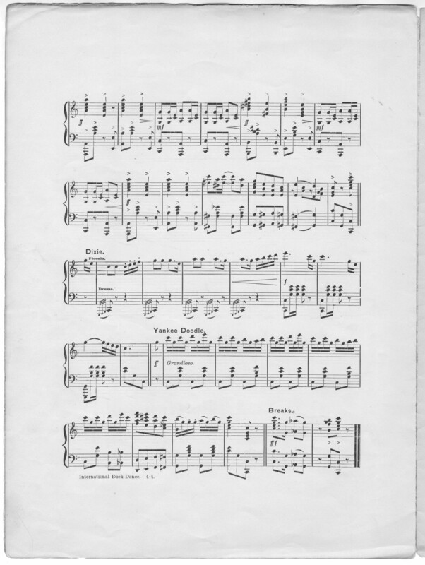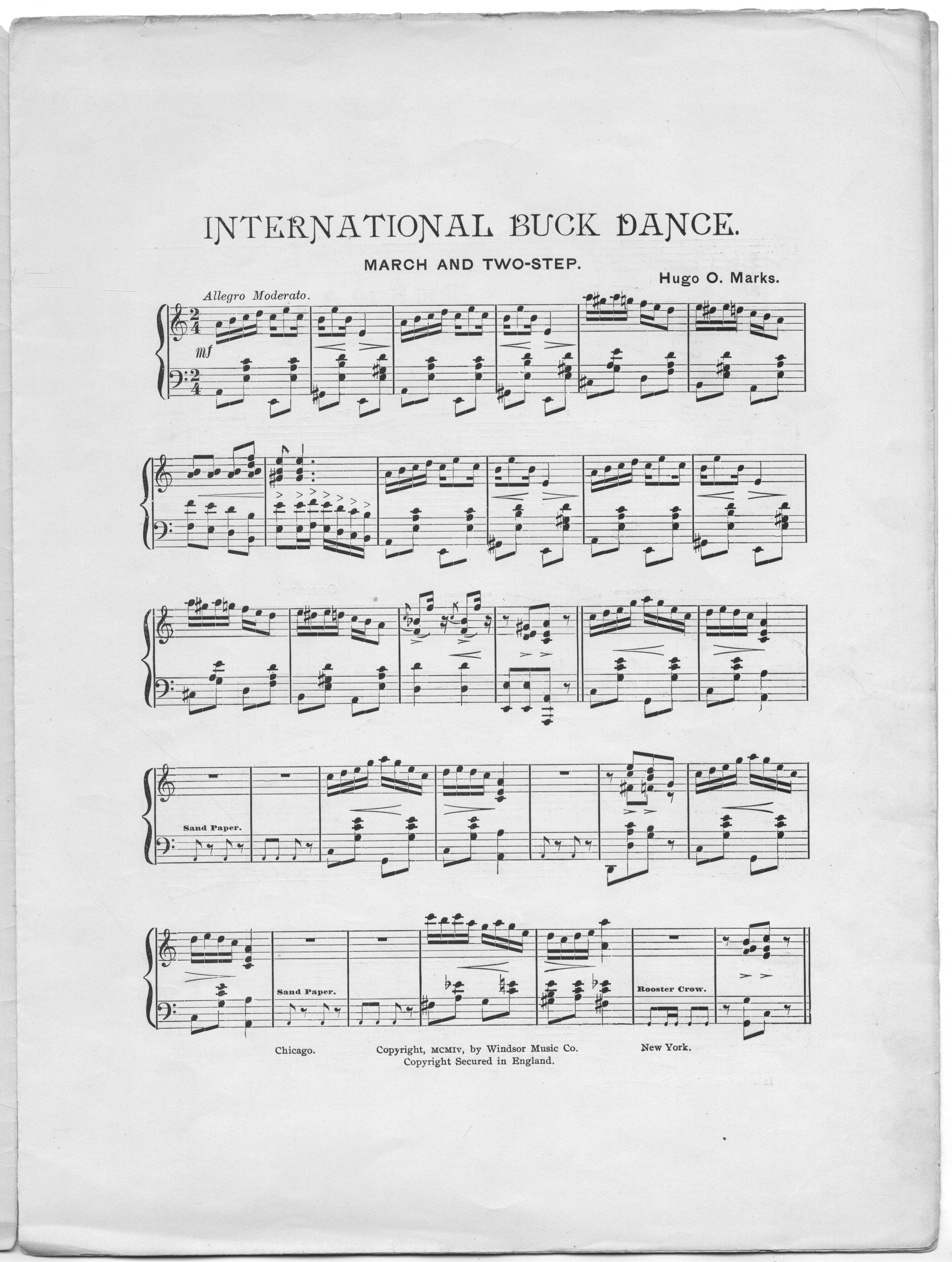 Marks, Hugo O. 2000. International Buck Dance : March and Two-Step Hugo O. Marks.. Chicago (266 Wabash Ave.) : published by the Windsor Music Co, Class, Race, and Sheet Music at the Louisiana Purchase Exposition, accessed February 12, 2026, https://digitalexhibits.library.wustl.edu/s/lpemusic/item/35483
