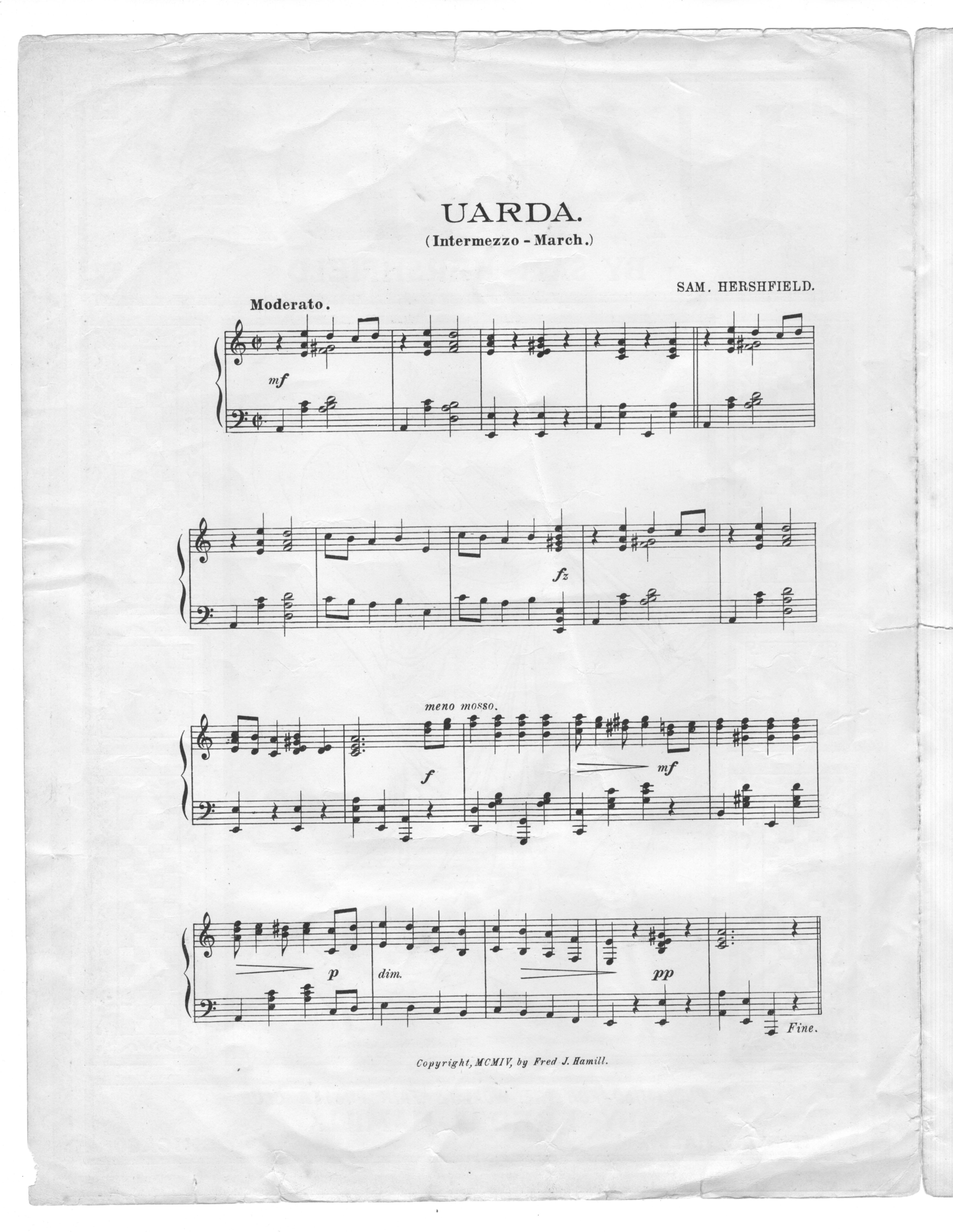 Hershfield, Sam. 2000. Uarda By Sam Hershfield.. Chicago (Steinway Hall) : Published for the World’s Fair Poster Club by Fred J. Hamill, Class, Race, and Sheet Music at the Louisiana Purchase Exposition, accessed February 12, 2026, https://digitalexhibits.library.wustl.edu/s/lpemusic/item/35484