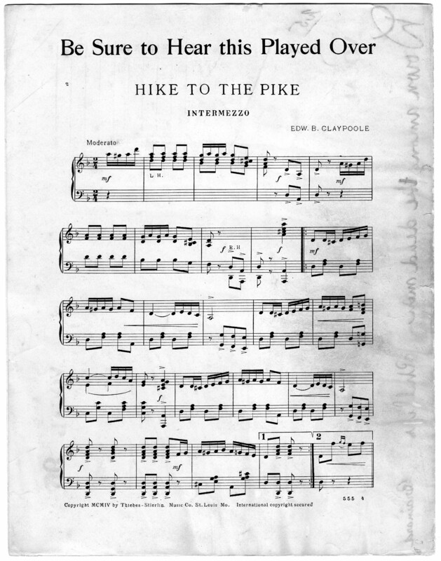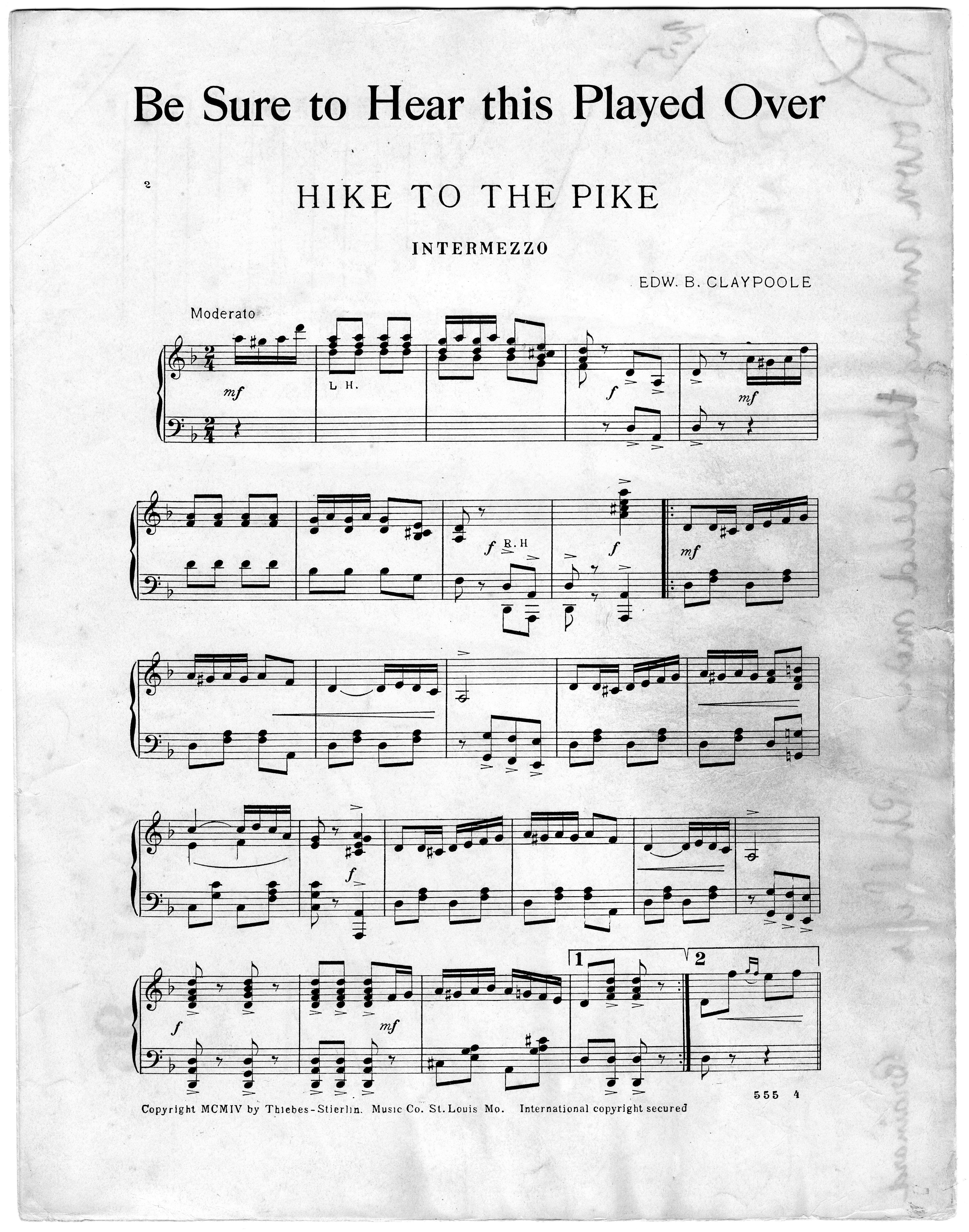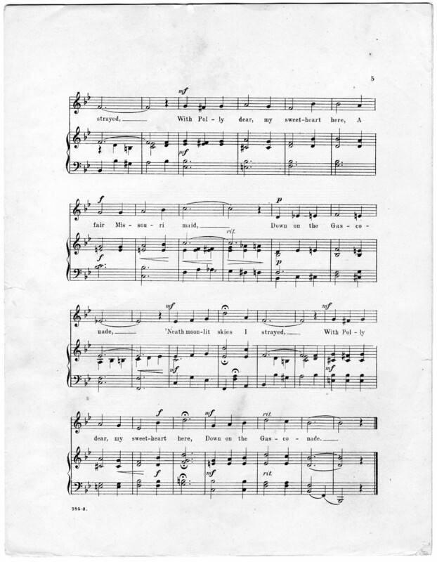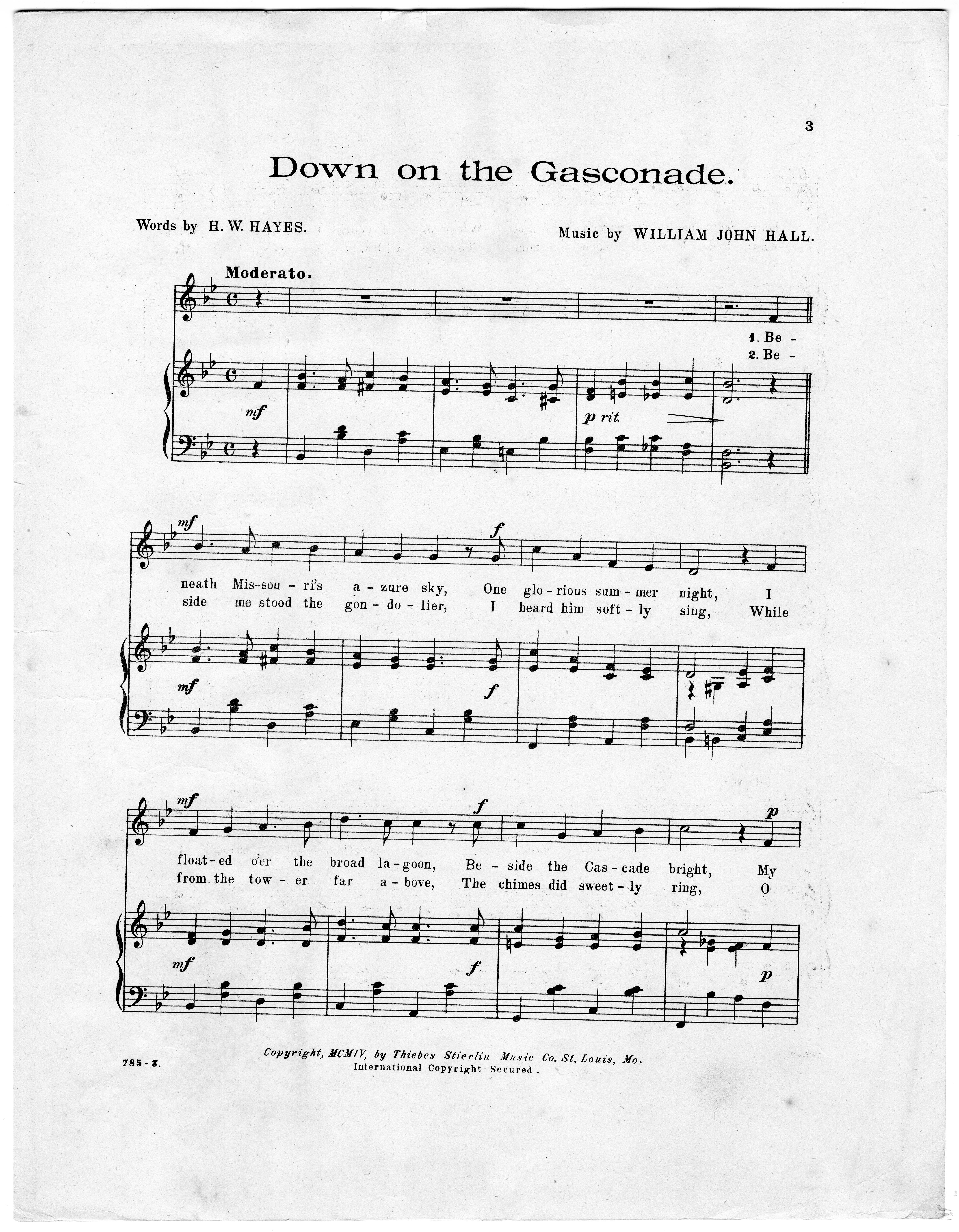 Hall, William John, 1867-1931. 2000. Down on the Gasconade Book by Hiram W. Hayes ; Music by Wm. John Hall ; Anton Heindl.. St. Louis (514-516 Locust St.) : Hunleth Music Co., Most complete music house in St. Louis, Class, Race, and Sheet Music at the Louisiana Purchase Exposition, accessed February 12, 2026, https://digitalexhibits.library.wustl.edu/s/lpemusic/item/3567