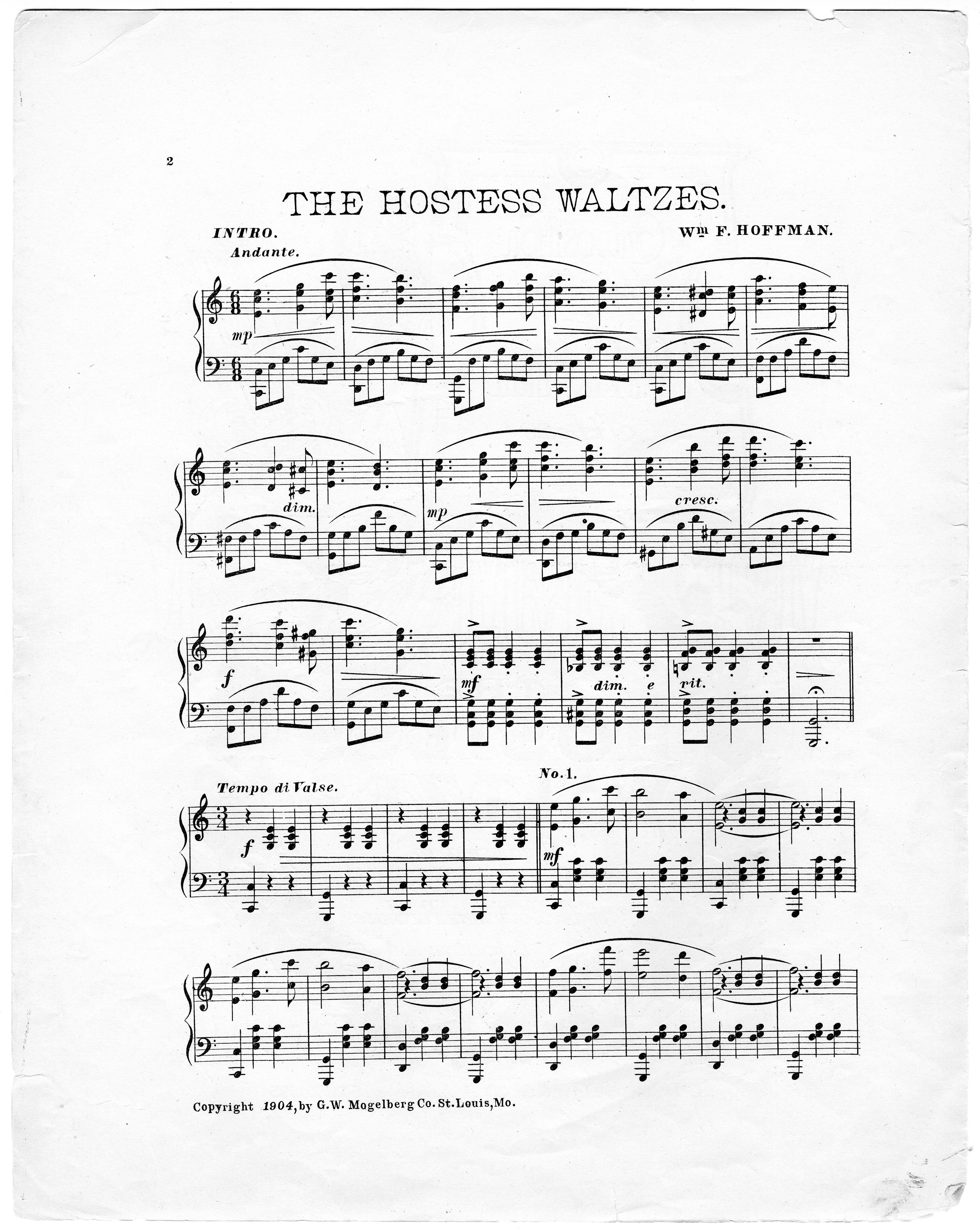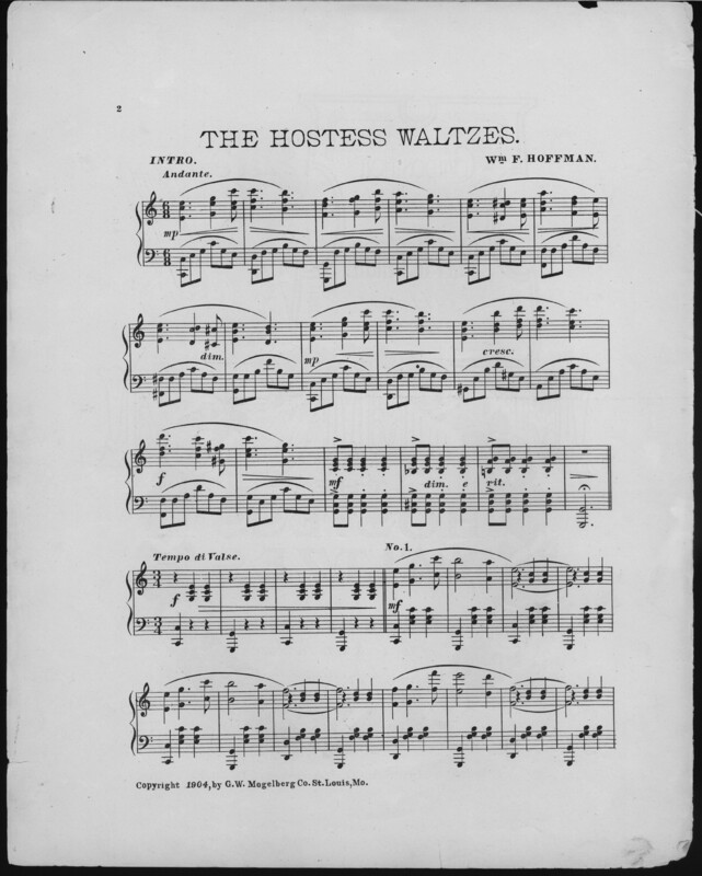 Hoffman, Wm. F. 2000. “The Hostess Waltzes Wm. F. Hoffman”. St. Louis, Mo. : G.W. Mogelberg Co, Class, Race, and Sheet Music at the Louisiana Purchase Exposition, accessed February 11, 2026, https://digitalexhibits.library.wustl.edu/s/lpemusic/item/3572