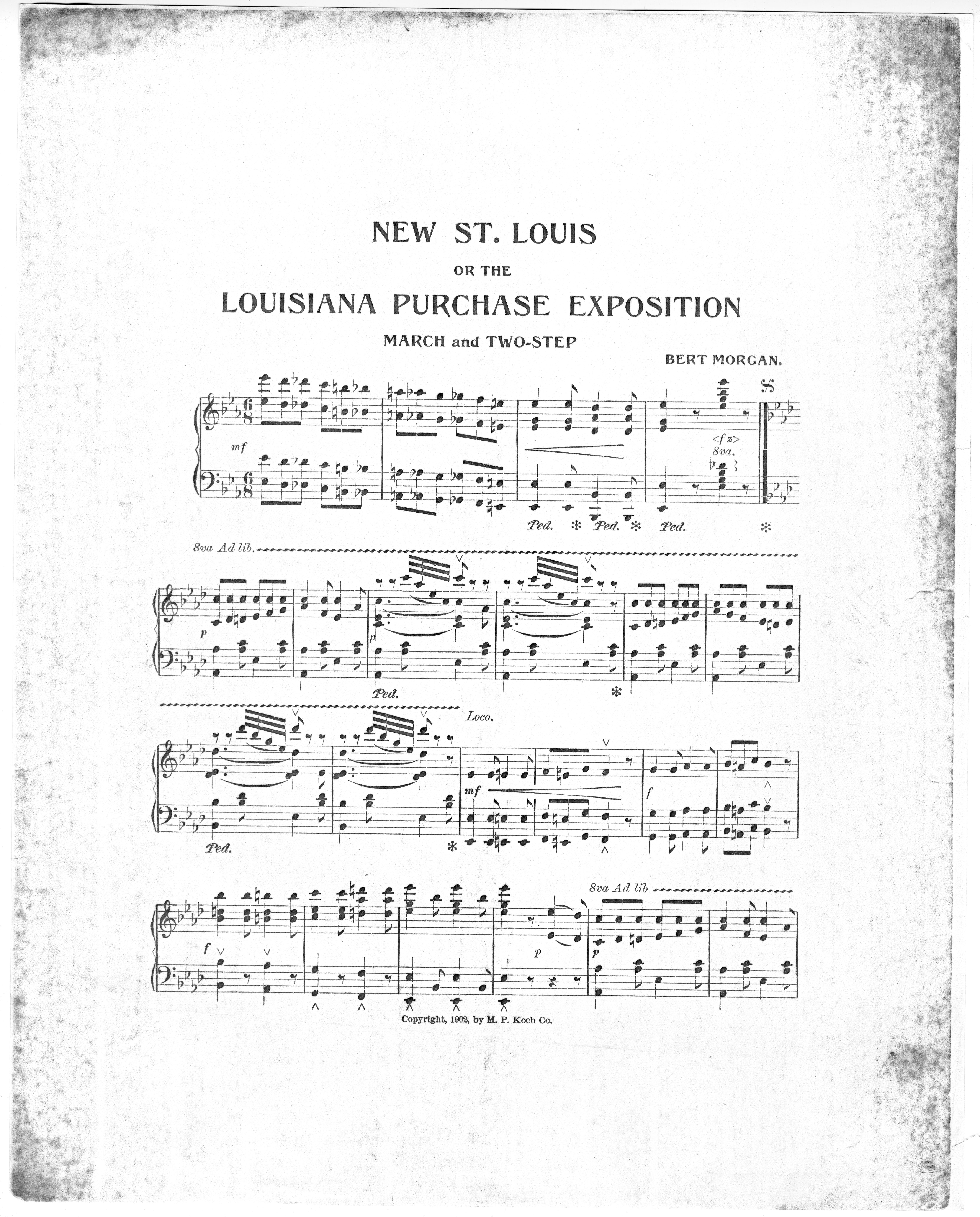 Morgan, Bert. 2000. “‘New St. Louis’, Or, The Louisiana Purchase Exposition : March and Two Step By Bert Morgan”. St. Louis, Mo. : M.P. Koch Co, Class, Race, and Sheet Music at the Louisiana Purchase Exposition, accessed February 12, 2026, https://digitalexhibits.library.wustl.edu/s/lpemusic/item/3574