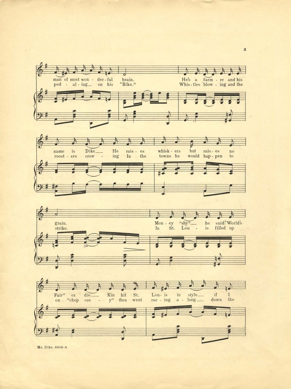 Ellsworth, Eugene. 2000. “Mr. Dike from Pike : a World’s Fair Oddity By Eugene Ellsworth”. [s.n.] : M. Witmark & Sons, Class, Race, and Sheet Music at the Louisiana Purchase Exposition, accessed February 12, 2026, https://digitalexhibits.library.wustl.edu/s/lpemusic/item/3591