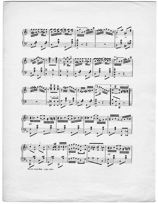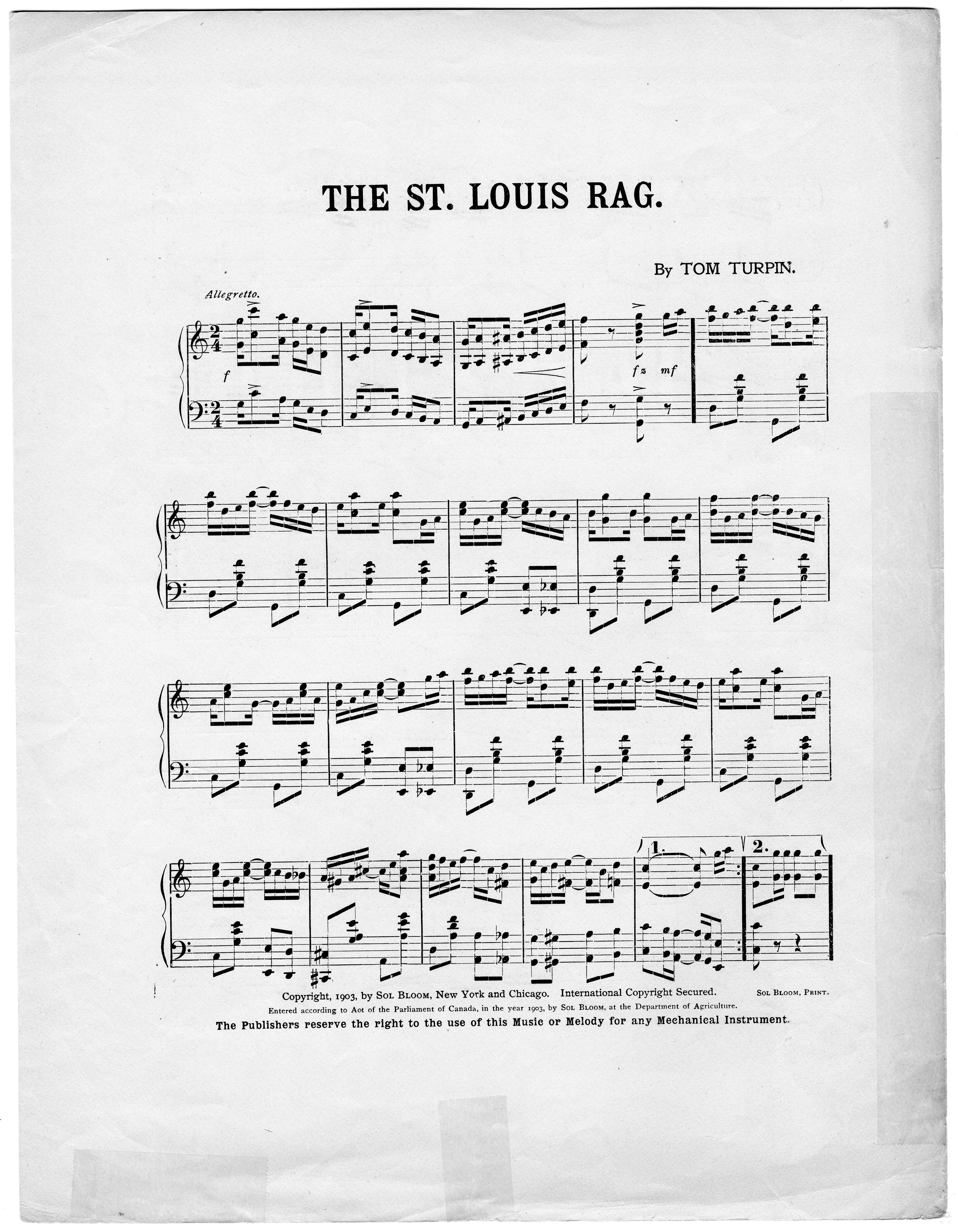 Turpin, Tom. 2000. “The St. Louis Rag : Instrumental Novelty for Piano By Tom Turpin”. New York (New Amesterdam Theatre Building) : published by Sol Bloom, Class, Race, and Sheet Music at the Louisiana Purchase Exposition, accessed February 12, 2026, https://digitalexhibits.library.wustl.edu/s/lpemusic/item/3595
