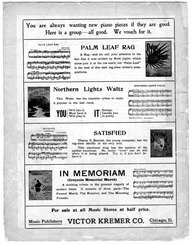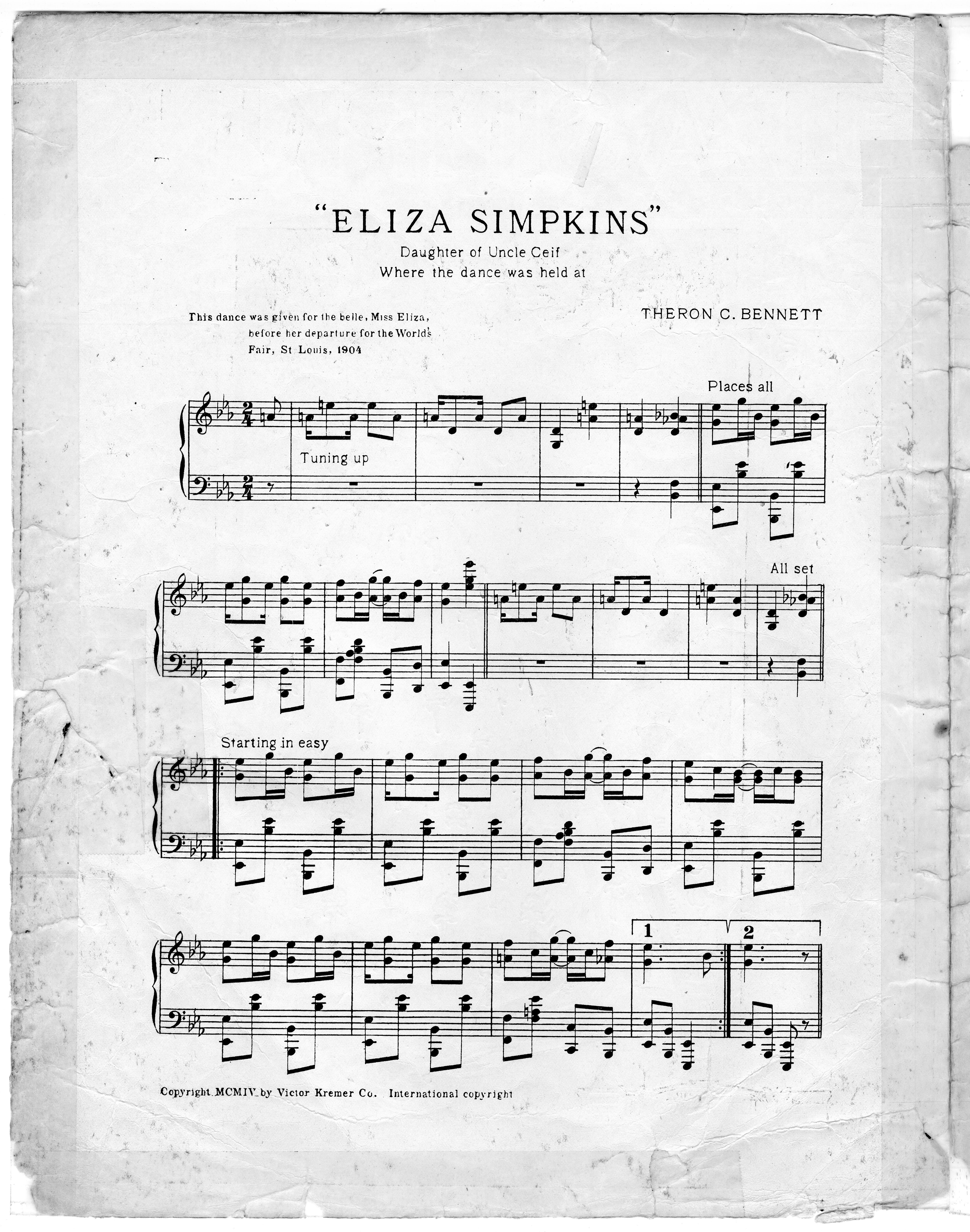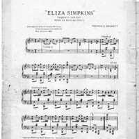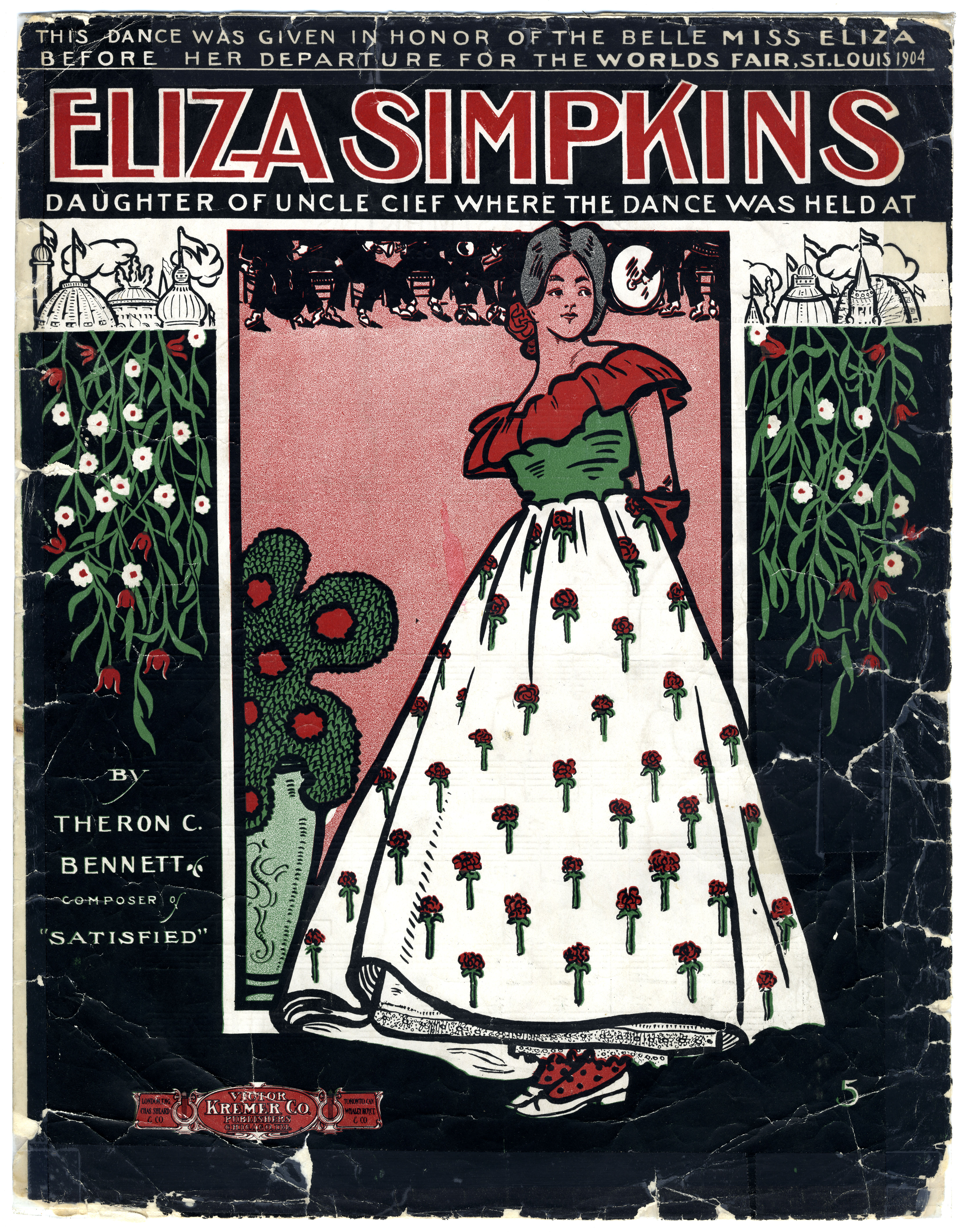 Bennett, Theron C., 1879-1937. 2000. “Eliza Simpkins : Daughter of Uncle Cief Where the Dance Was Held at By Theron C. Bennett”. Chicago, Ill. : Victor Kremer Co., Publishers, Class, Race, and Sheet Music at the Louisiana Purchase Exposition, accessed February 12, 2026, https://digitalexhibits.library.wustl.edu/s/lpemusic/item/3596