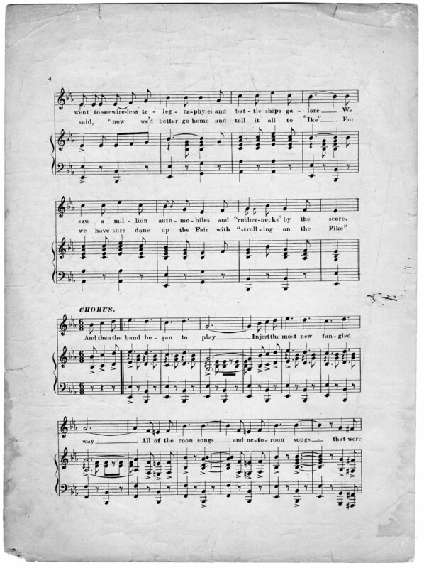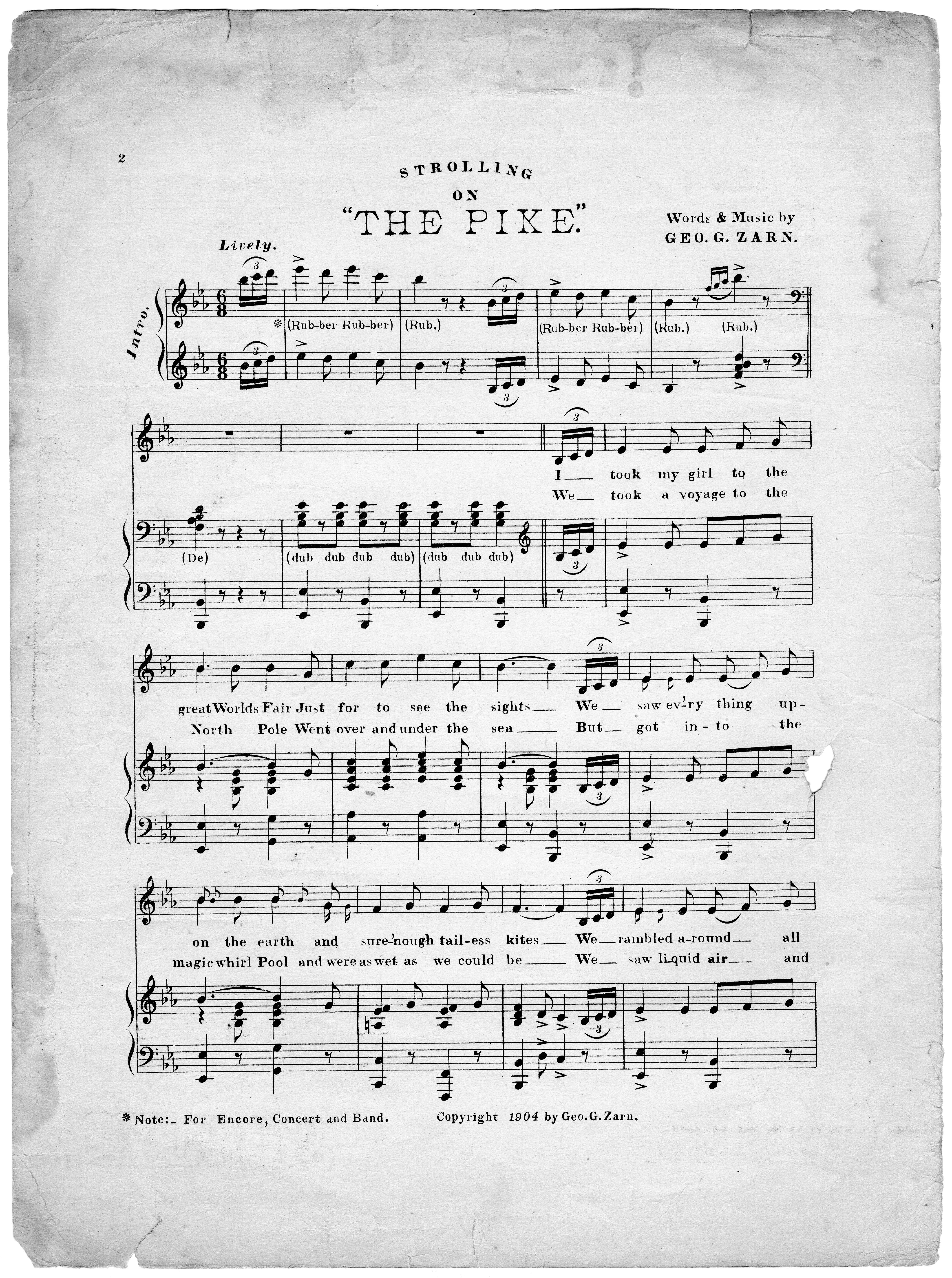 Zarn, Geo. G. 2000. “Strolling on the Pike : Song [words & Music by Geo. G. Zarn]”. St. Louis, Mo. : publisher G.G. Zarn, Class, Race, and Sheet Music at the Louisiana Purchase Exposition, accessed February 12, 2026, https://digitalexhibits.library.wustl.edu/s/lpemusic/item/3601