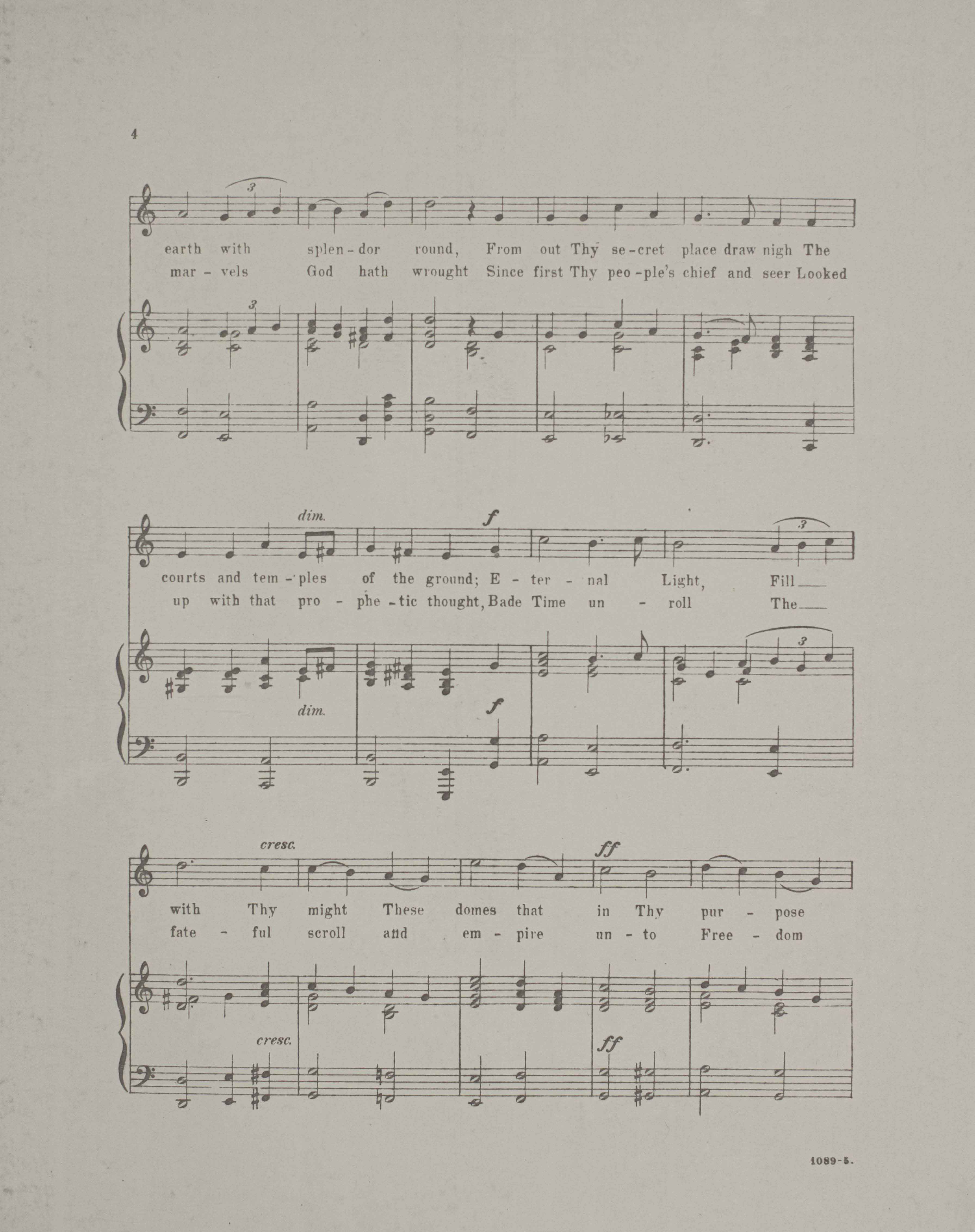 - Originally for chorus of mixed voices and orchestra; arr. for voice and acc. of piano, with some interludes abridged.