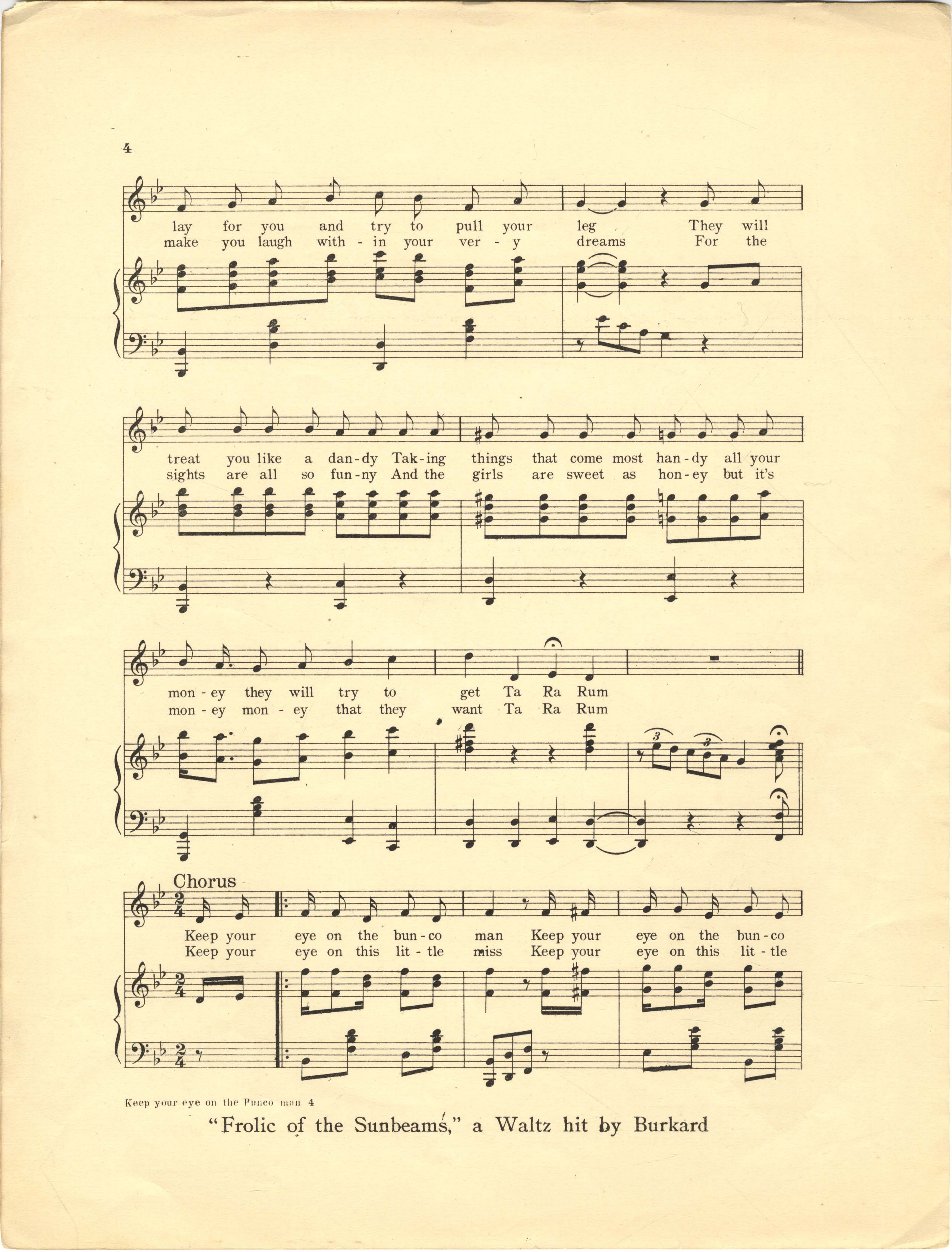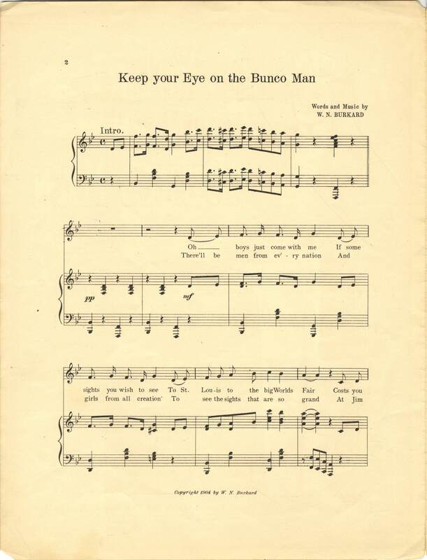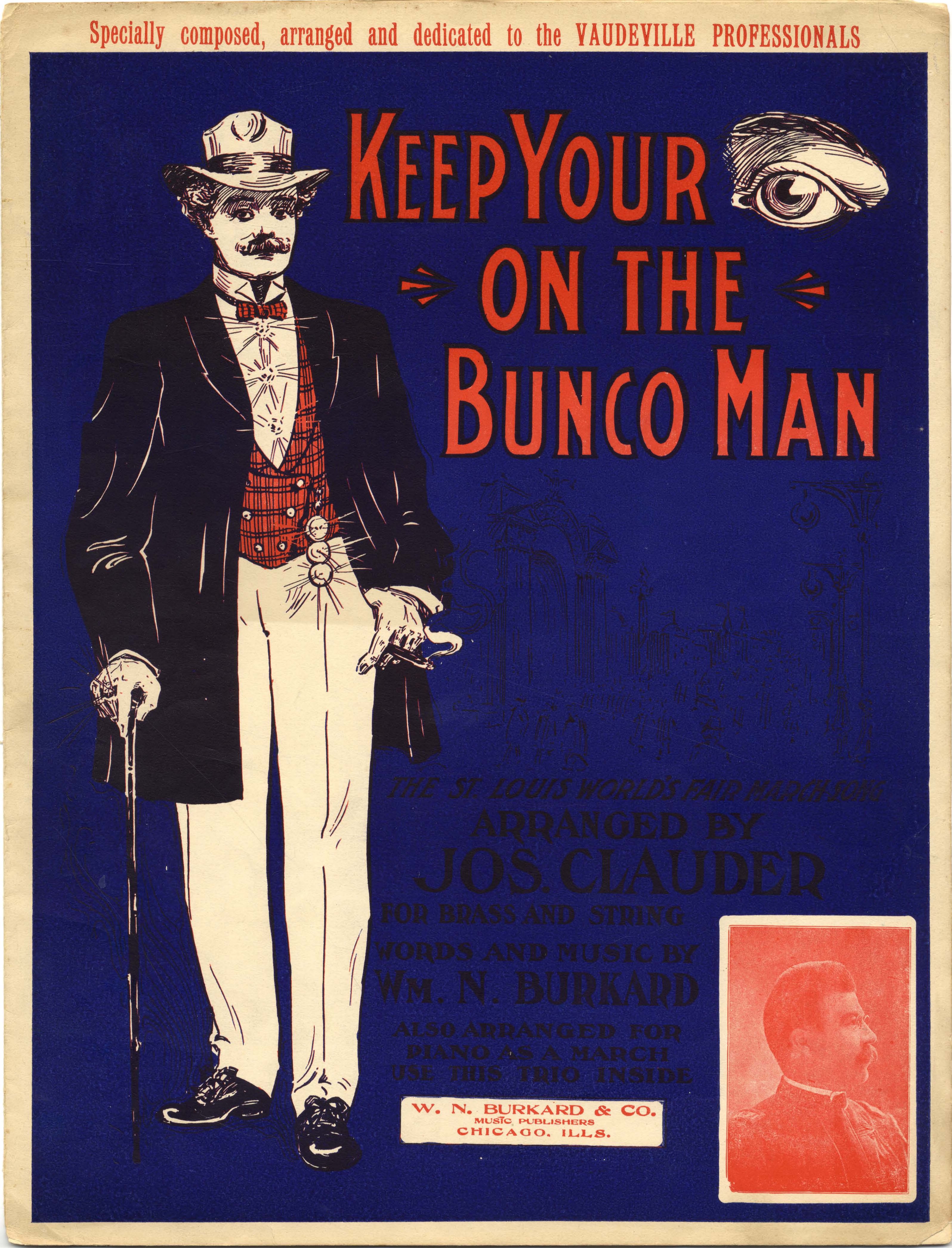 Keep your eye on the bunco man : the St. Louis World's Fair march song / words and music by Wm. N. Burkard.