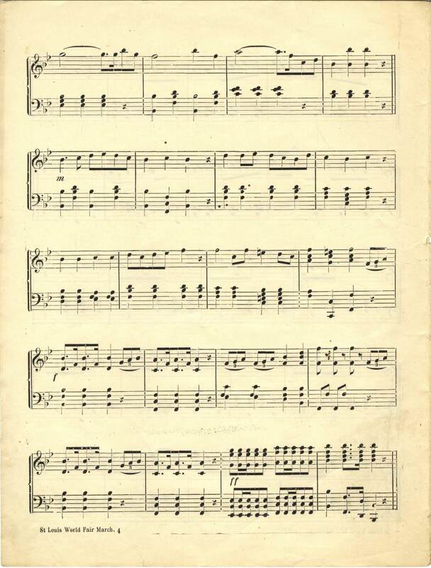 Wells, R. S. 2000. “St. Louis Worlds Fair March : For Piano or Organ R.S. Wells”. [A.W. Perry’s Sons.], Class, Race, and Sheet Music at the Louisiana Purchase Exposition, accessed February 11, 2026, https://digitalexhibits.library.wustl.edu/s/lpemusic/item/42950