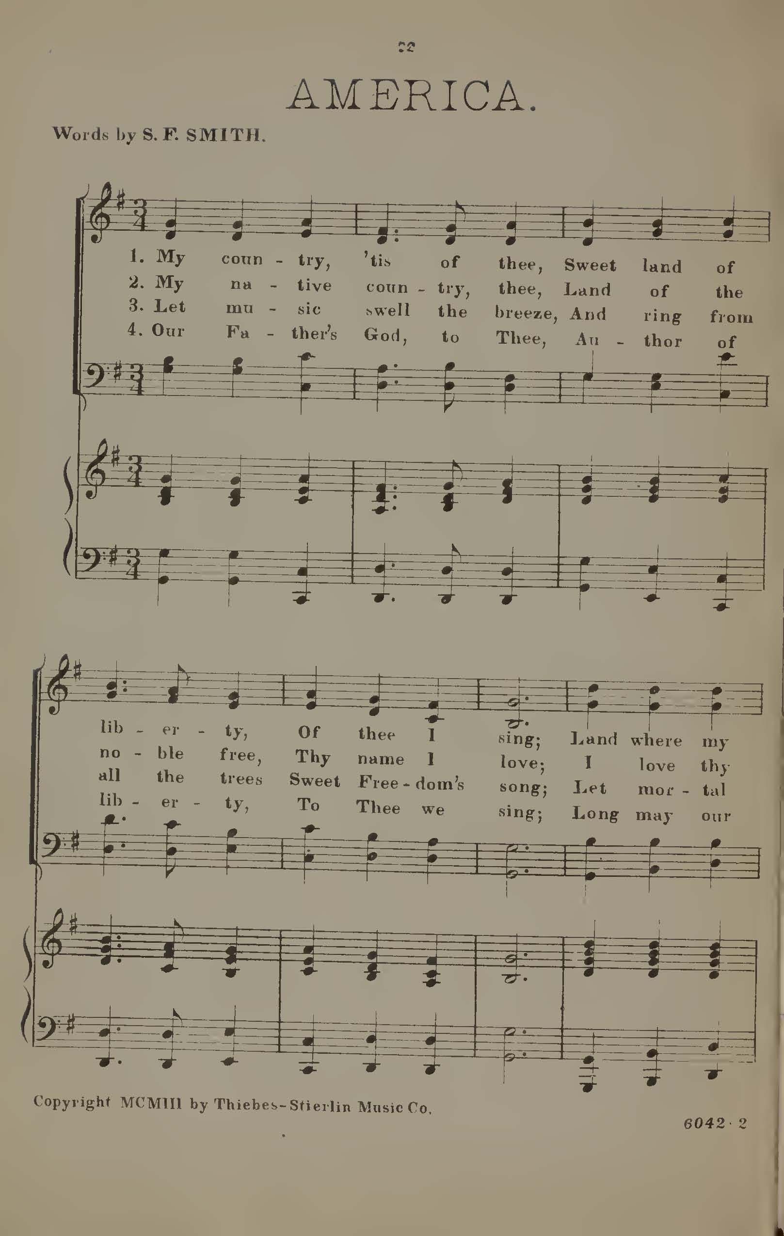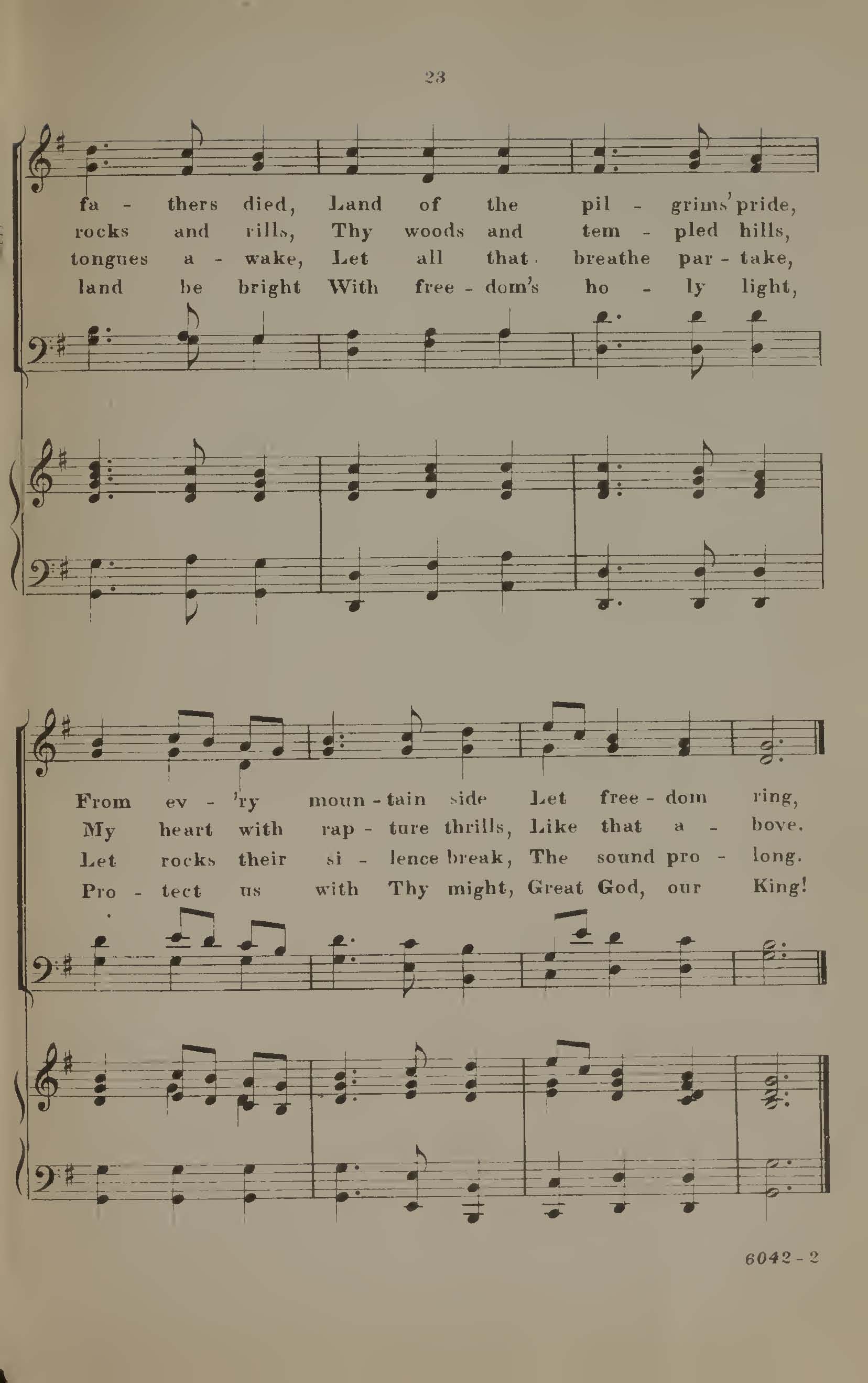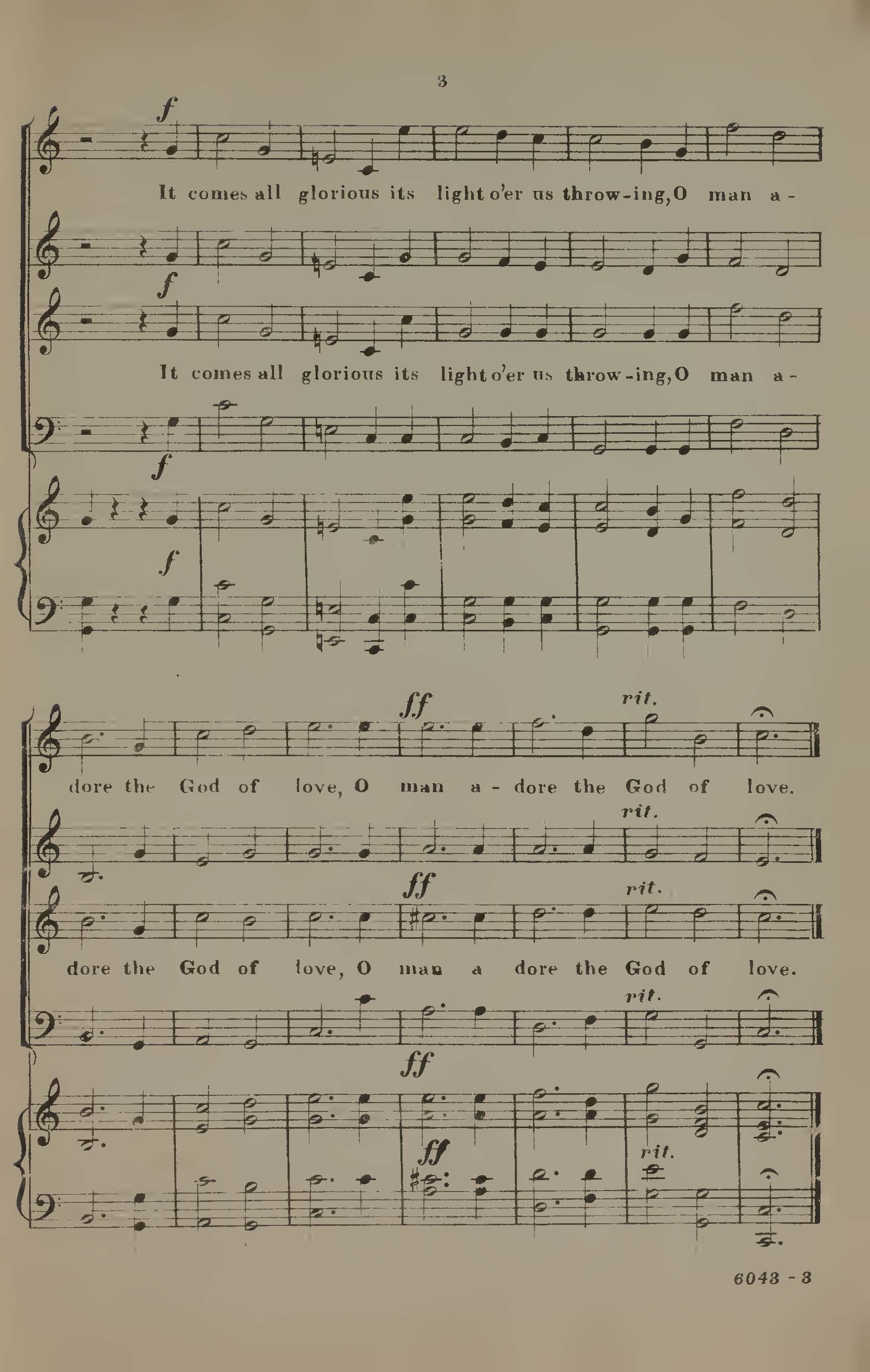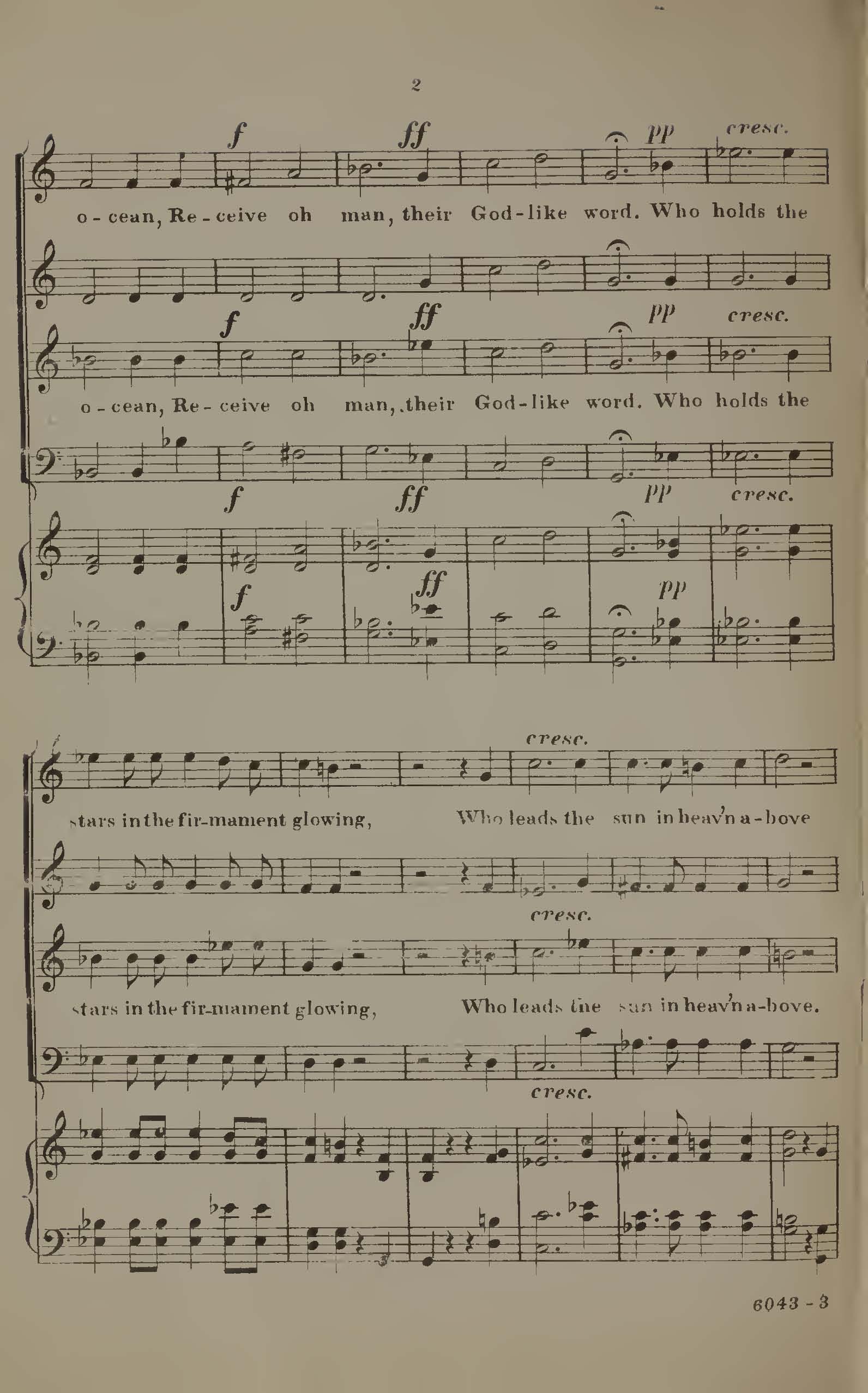 - Creation hymn / L. van Beethoven -- Hallelujah chorus : from "Messiah" / G.F. Händel -- Unfold, ye portals : from "The redemption" / Ch. Gounod -- America / words by S.F. Smith.