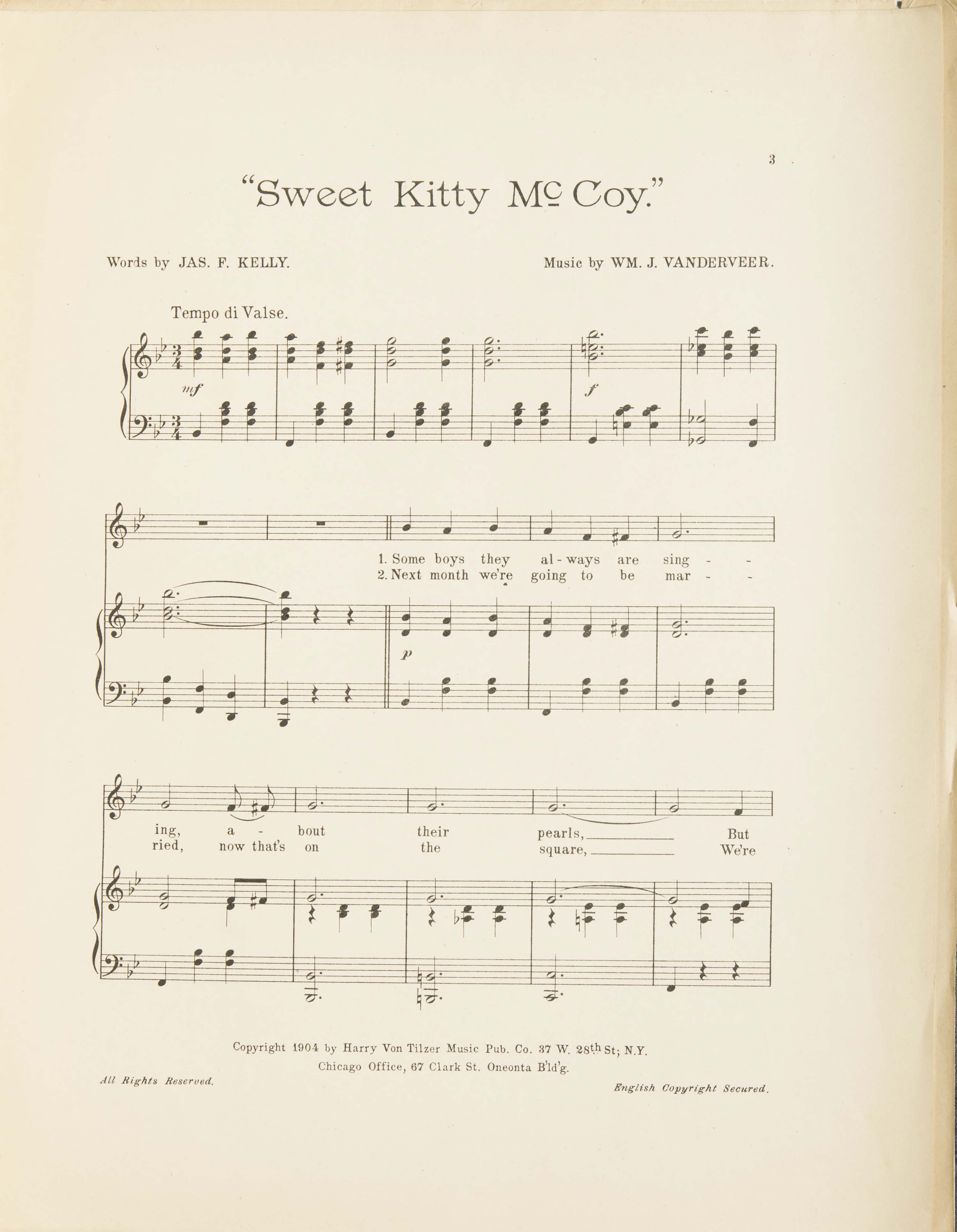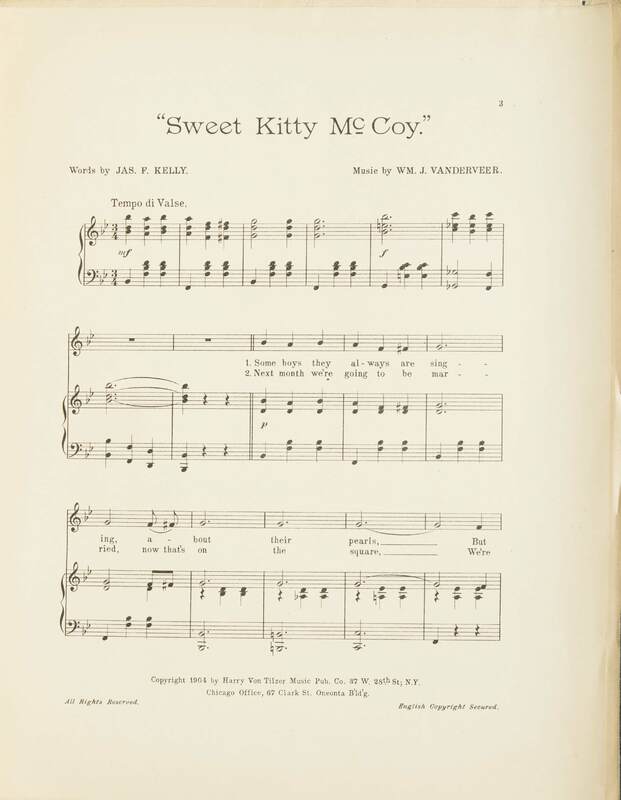 Vanderveer, William J. 2000. “Sweet Kitty McCoy Words by Jas. F. Kelly ; Music by Wm. J. Vanderveer”. New York (37 W. 28th St.) : Harry von Tilzer Music Publishing Co, Class, Race, and Sheet Music at the Louisiana Purchase Exposition, accessed February 11, 2026, https://digitalexhibits.library.wustl.edu/s/lpemusic/item/43442