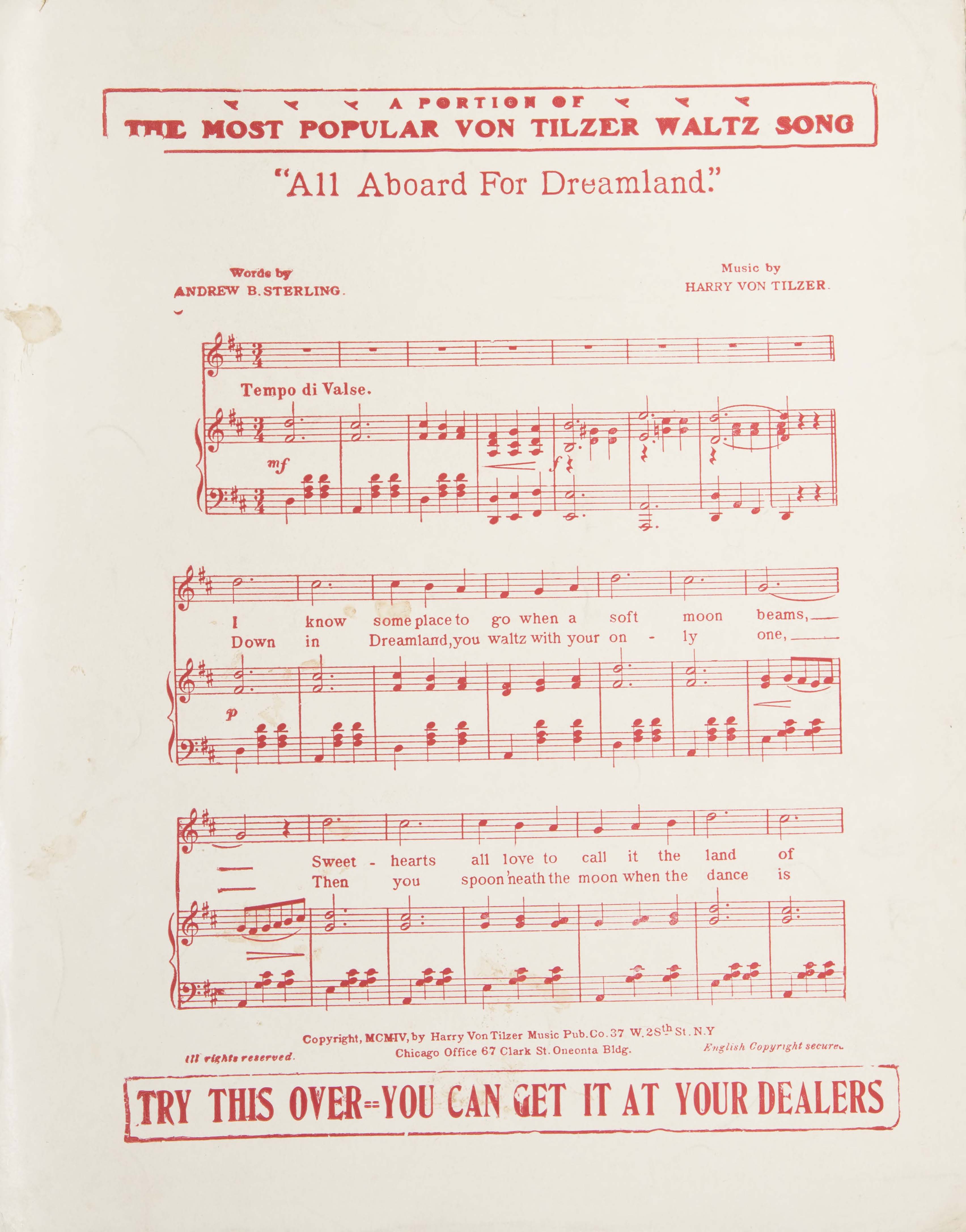 - New York (37 W. 28th St.) : Harry von Tilzer Music Publishing Co.