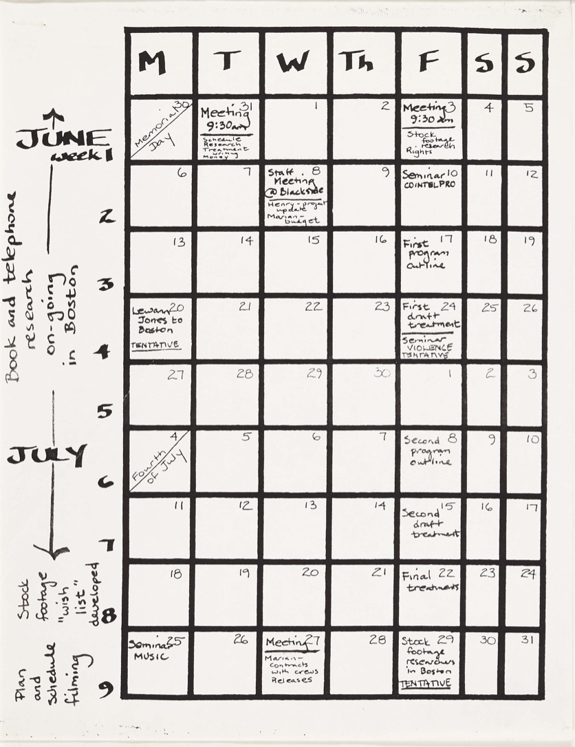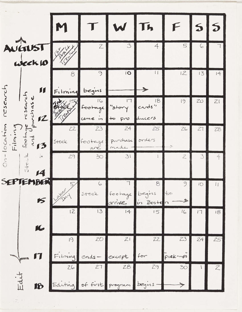 “Production Calendar - June through September 1988”. Letter. 1987. Paper, 1987, More than Talking Heads, accessed February 11, 2026, https://digitalexhibits.library.wustl.edu/s/more-than-talking-heads/item/2184