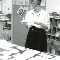 Alison Bassett Reviewing Documents. 1987, More than Talking Heads, accessed February 11, 2026, https://digitalexhibits.library.wustl.edu/s/more-than-talking-heads/item/2214