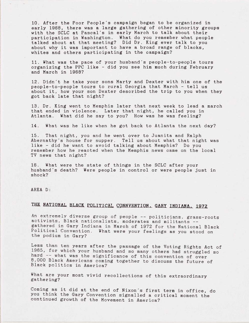 Coretta Scott King Interview Questions