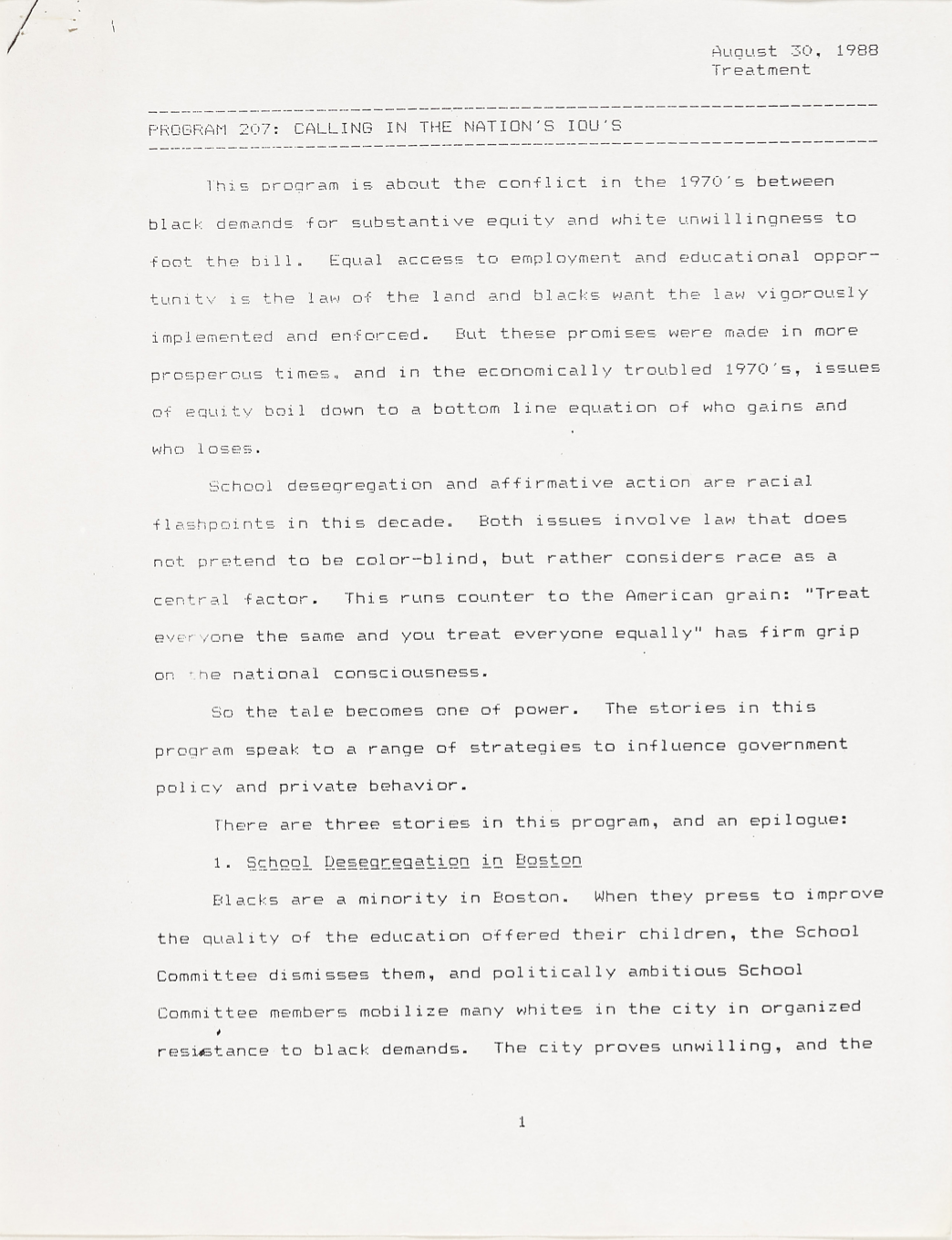 “Episode #207 Preliminary Treatment”. Letter. 1988. Paper, 1988, More than Talking Heads, accessed March 6, 2026, https://digitalexhibits.library.wustl.edu/s/more-than-talking-heads/item/2445